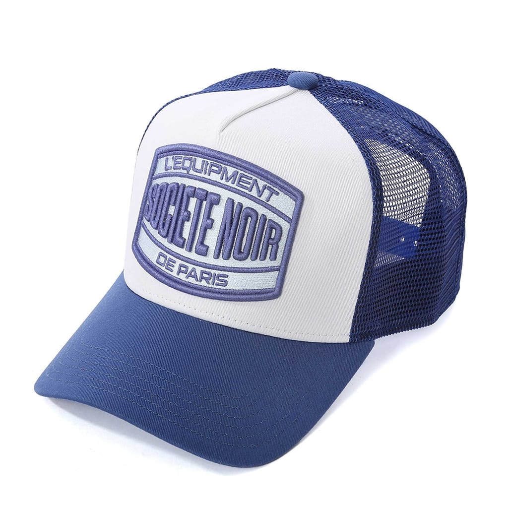 Discover the Societe Noir trucker cap, featuring a stylish patch and embroidered embellishments. This hat is designed with mesh details for added breathability and comfort. The snap-back closure ensures a secure fit, making it a versatile addition to your collection. Perfect for those who appreciate a blend of functionality and style. -
