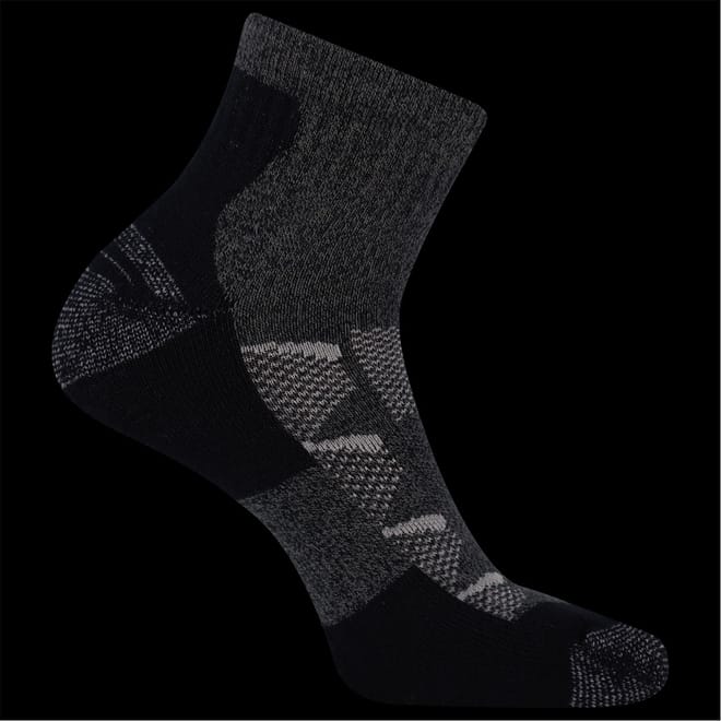 Discover the Merrell quarter socks, designed for walking enthusiasts. Featuring a geometric pattern, these socks offer a stylish touch to your outdoor adventures. The Merrell logo embellishment adds a distinctive brand mark, ensuring authenticity and quality. Perfectly crafted for comfort and durability, these socks are an ideal choice for those who appreciate both function and fashion. -