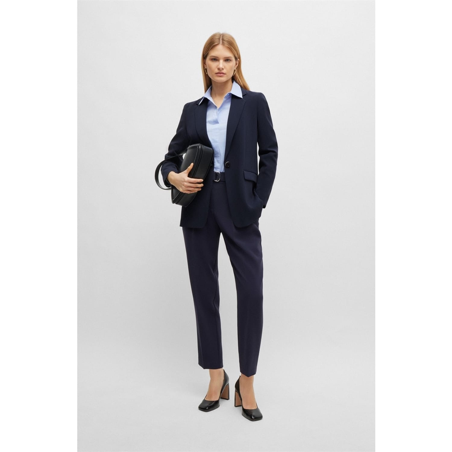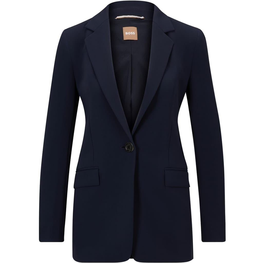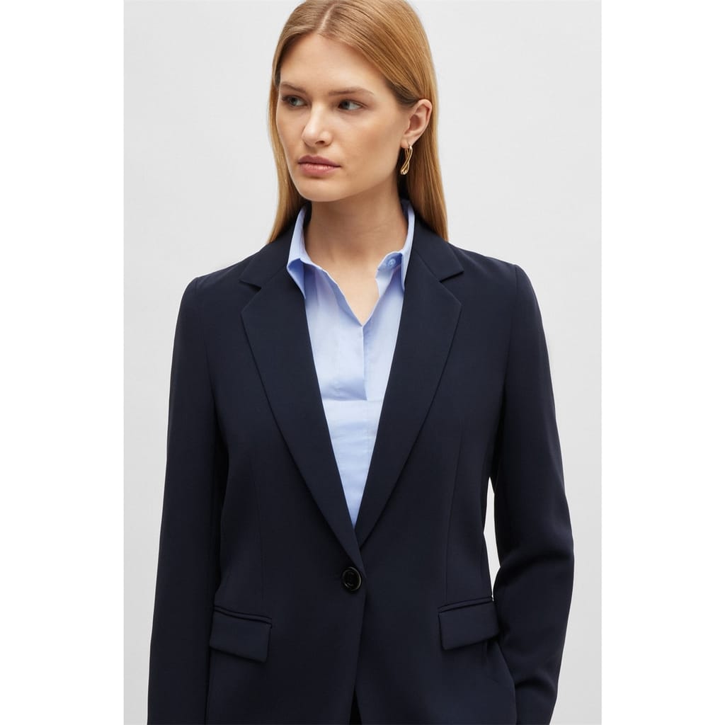 The Boss blazer from the workwear collection is a sophisticated choice for professional settings. Featuring a notch collar and a straight hem, this regular fit blazer is designed with a solid pattern and button closure. It includes practical pockets, making it both stylish and functional. -