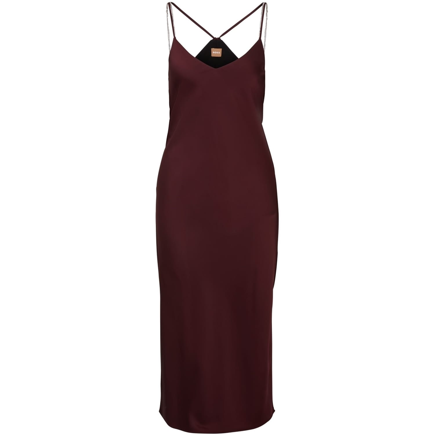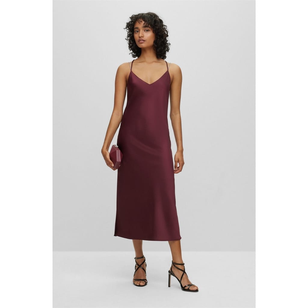 With a minimal aesthetic, the Boss Dechana Slip Dress is perfect for any occasion. Crafted from a satin fabrication, this longline silhouette is defined with a sleek block colourway while the flattering v-neckline offers a sultry allure. Set upon delicate straps fastening to the rear, this garment is perfect to style with sleek heels and a clutch.