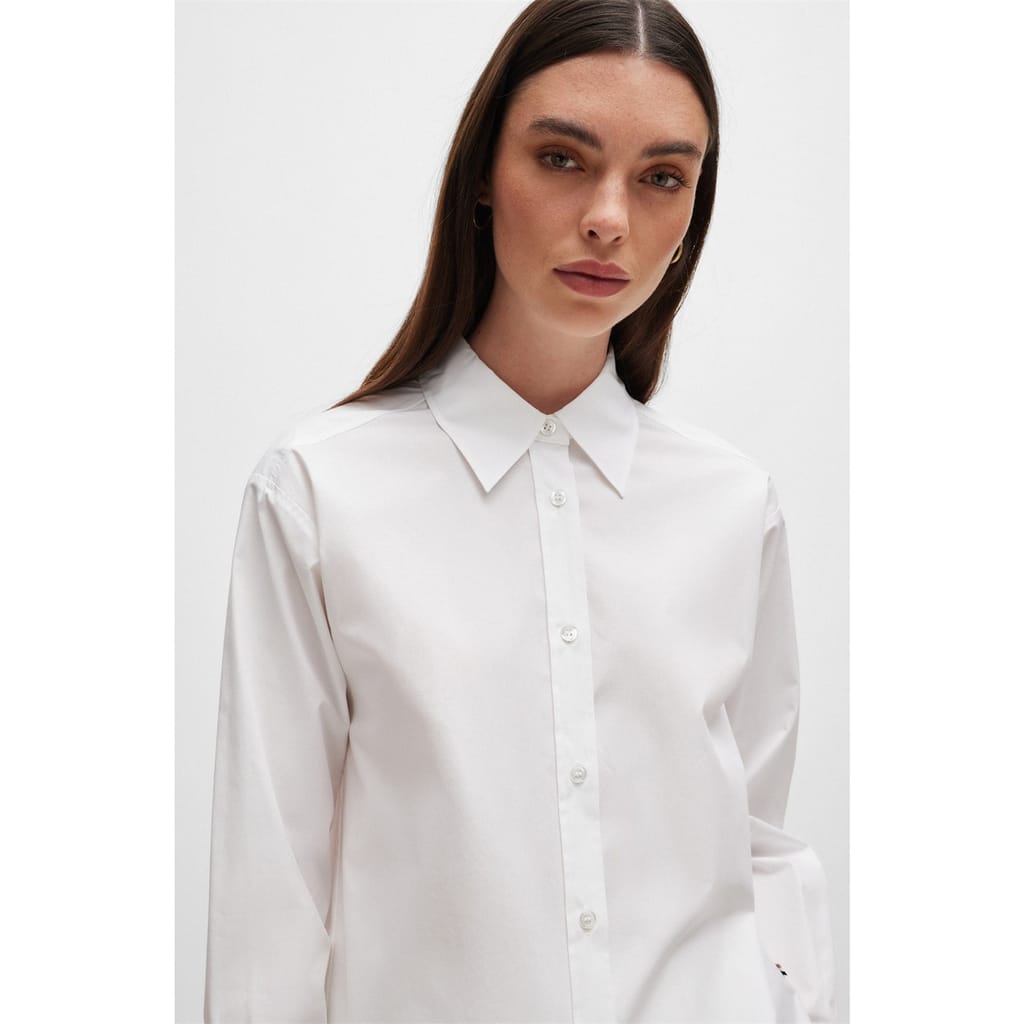 This Boss top features a solid pattern with a classic shirt collar and long sleeves. Designed with a button closure, it offers a regular fit, making it a versatile addition to your wardrobe. -