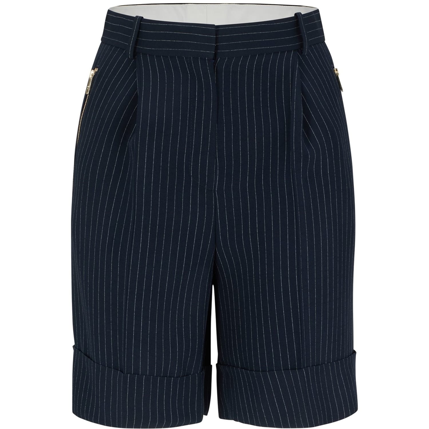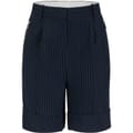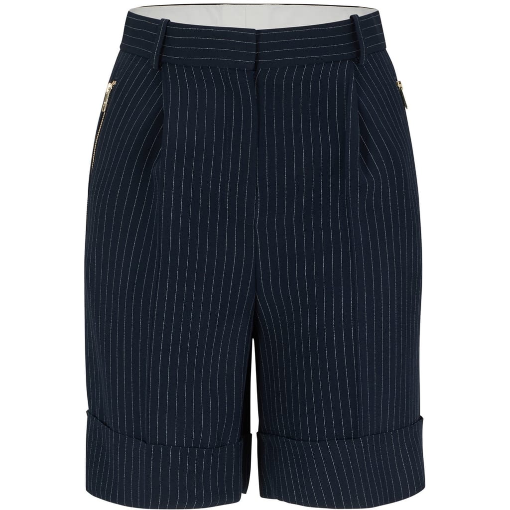 These Boss shorts feature a classic Bermuda style with a vertical stripe pattern, offering a sophisticated look. Designed with a convenient zipper closure and practical pockets, they combine functionality with style. Perfect for those seeking a refined yet casual addition to their wardrobe. -
