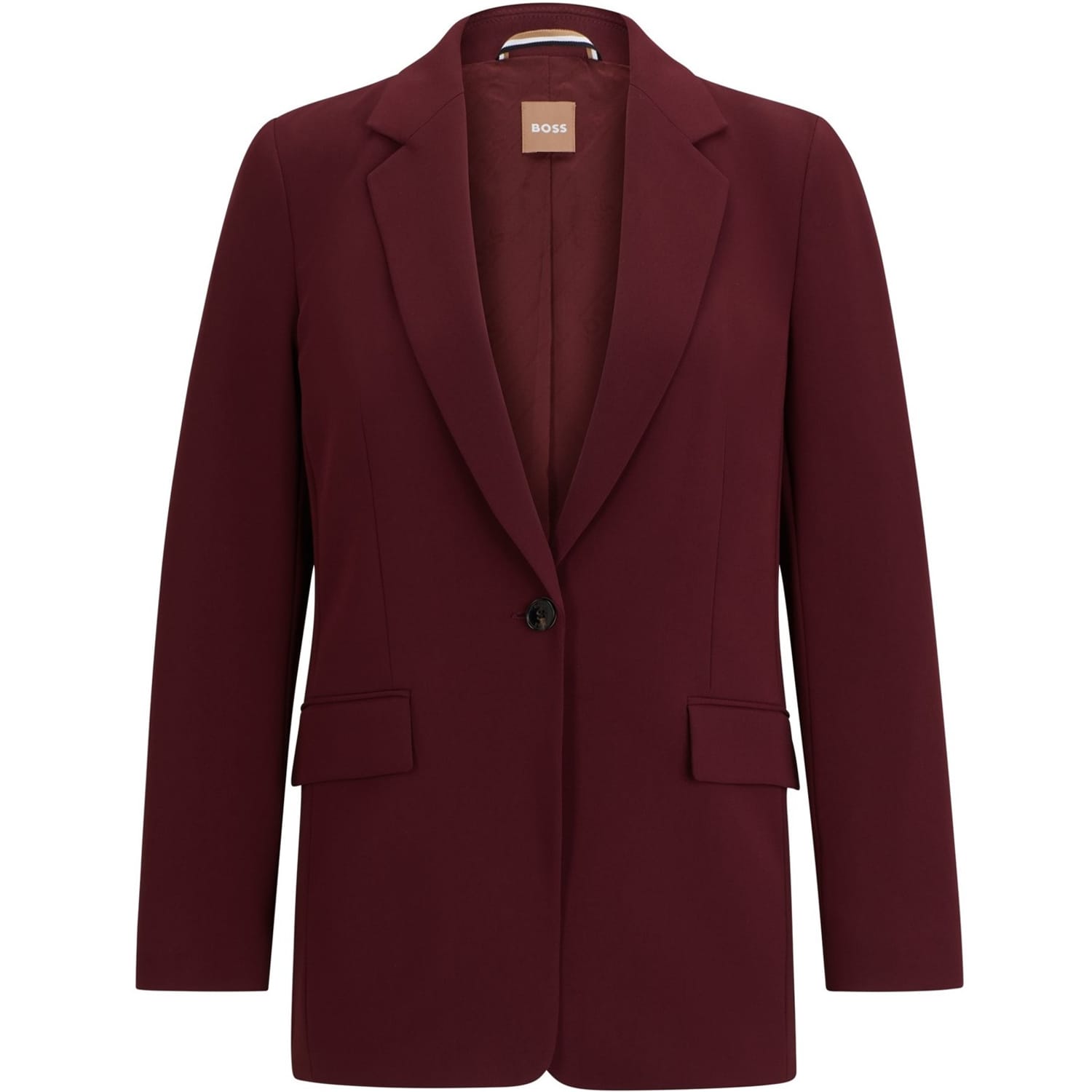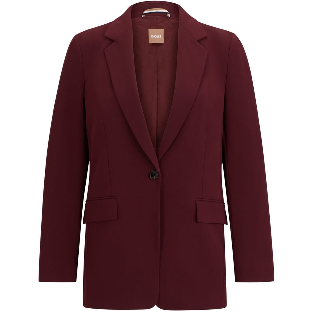 This Boss suit jacket features a lapel collar and a button closure, offering a regular fit. The solid pattern and straight hem provide a classic look, while the addition of pockets adds functionality. -