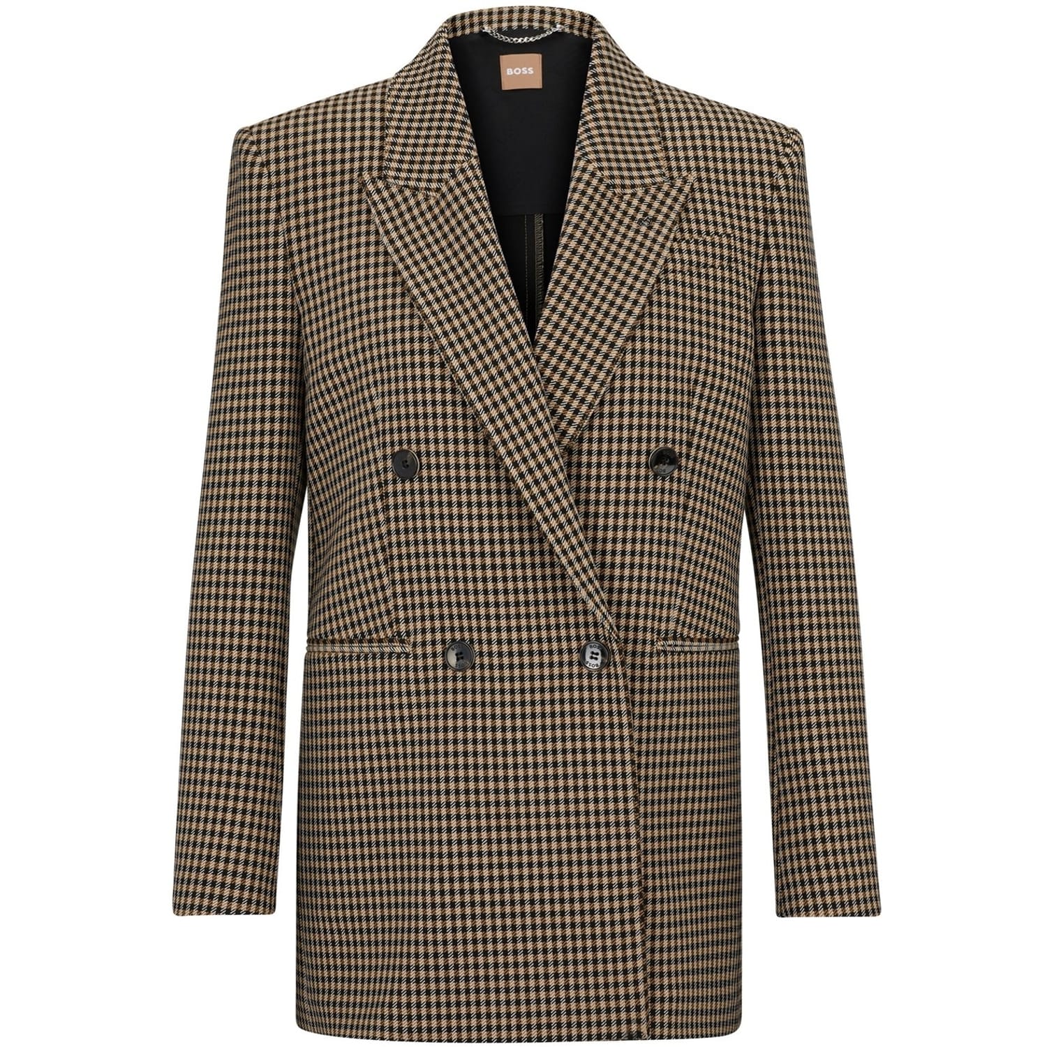 This Boss suit jacket features a classic lapel collar and a straight hem. Designed with a regular fit, it showcases a sophisticated houndstooth pattern. The jacket is equipped with a button closure and practical pockets, making it a versatile addition to any wardrobe. -