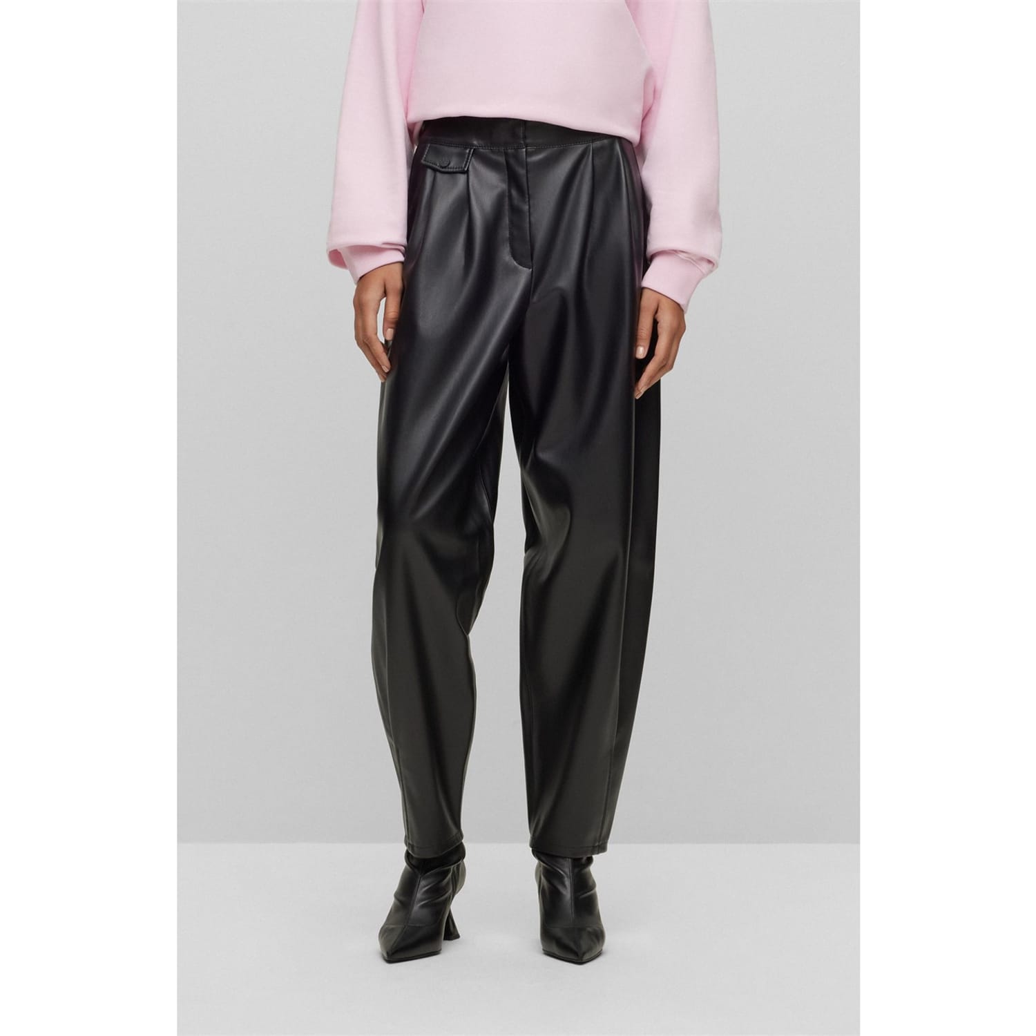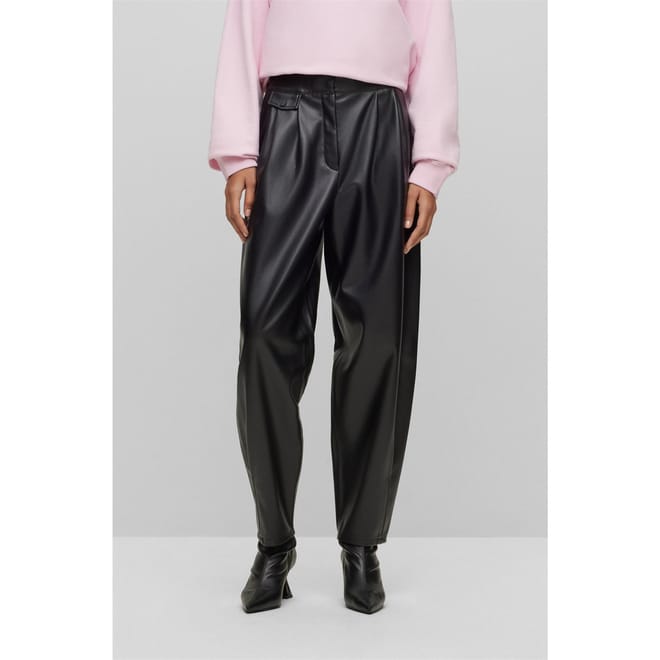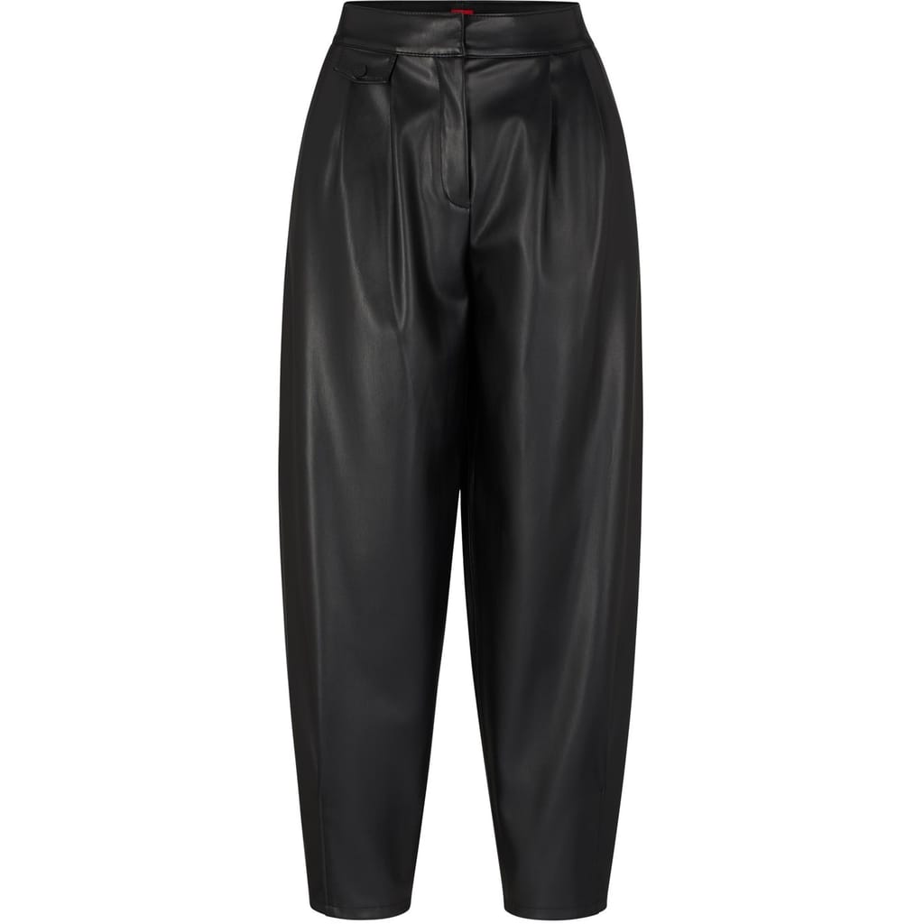 Discover the Hugo wide-leg pants, featuring a zip fly and button closure for a secure fit. These pants are designed with practical pockets, offering both style and functionality. Perfect for those seeking a blend of comfort and elegance in their wardrobe. -
