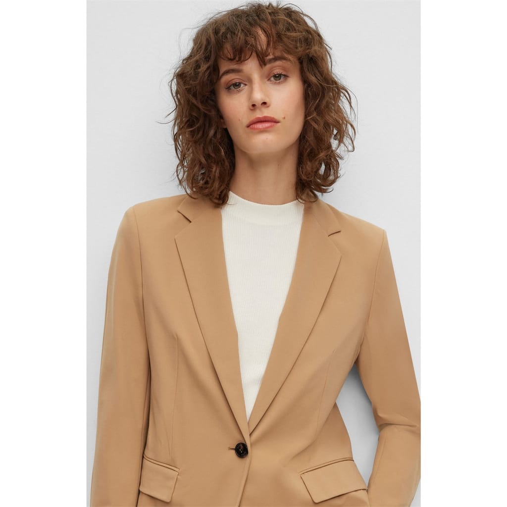 This Boss blazer from the workwear collection is a sophisticated choice for professional settings. Featuring a notch collar, single-button closure, and a straight hem, it offers a regular fit. The solid pattern and pocket embellishments add to its classic appeal, making it a versatile addition to any wardrobe. -