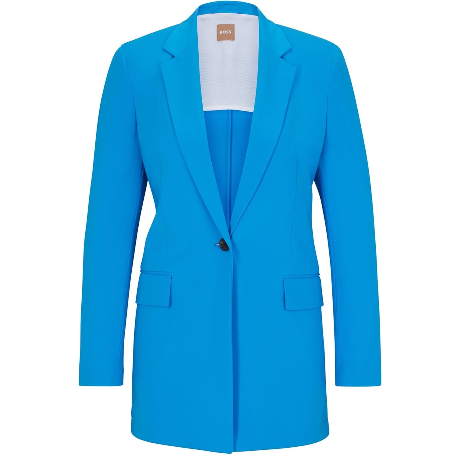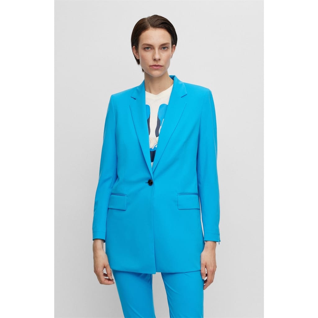 Elevate your workwear wardrobe with this Boss blazer. Featuring a lapel collar and a single-button closure, this solid jacket offers a regular fit for a polished appearance. The straight hem and practical pockets add functionality, making it a versatile addition to your collection. -