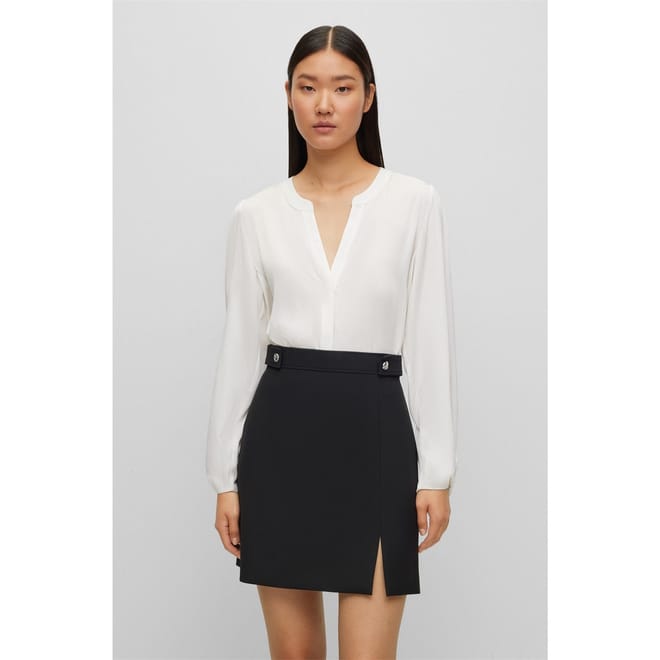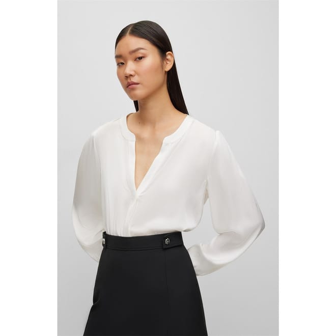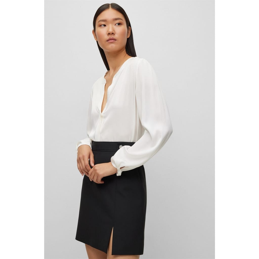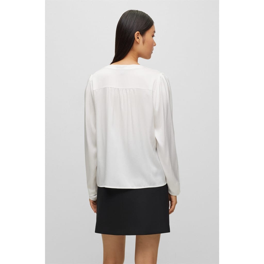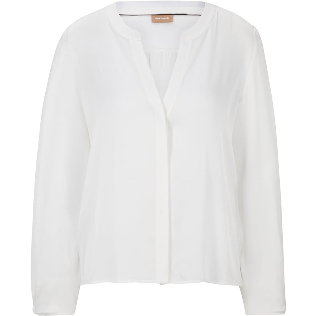 This Boss top features a relaxed fit and long sleeves, offering a comfortable and stylish option for any wardrobe. The solid pattern adds a classic touch, while the button closure ensures a secure fit. Ideal for those seeking a versatile and timeless piece. -