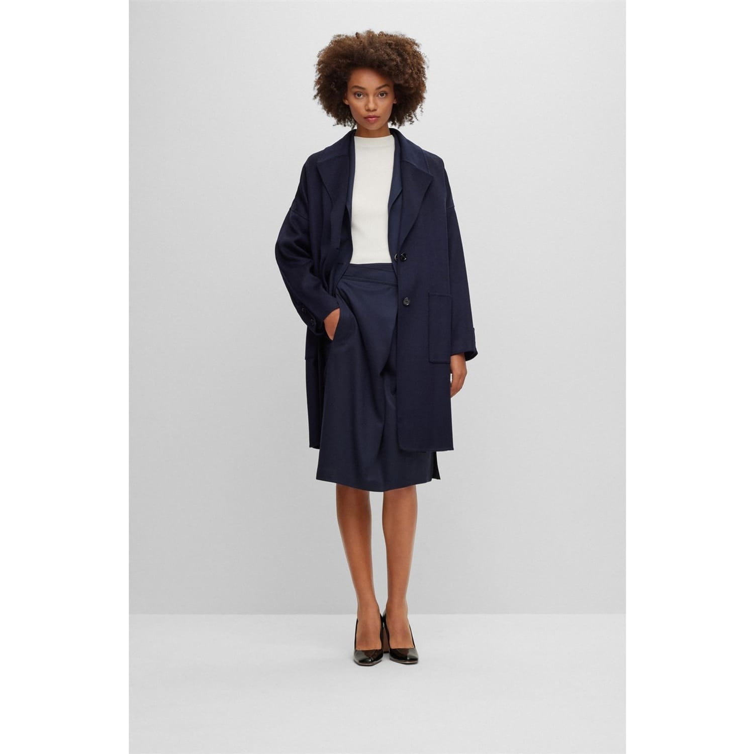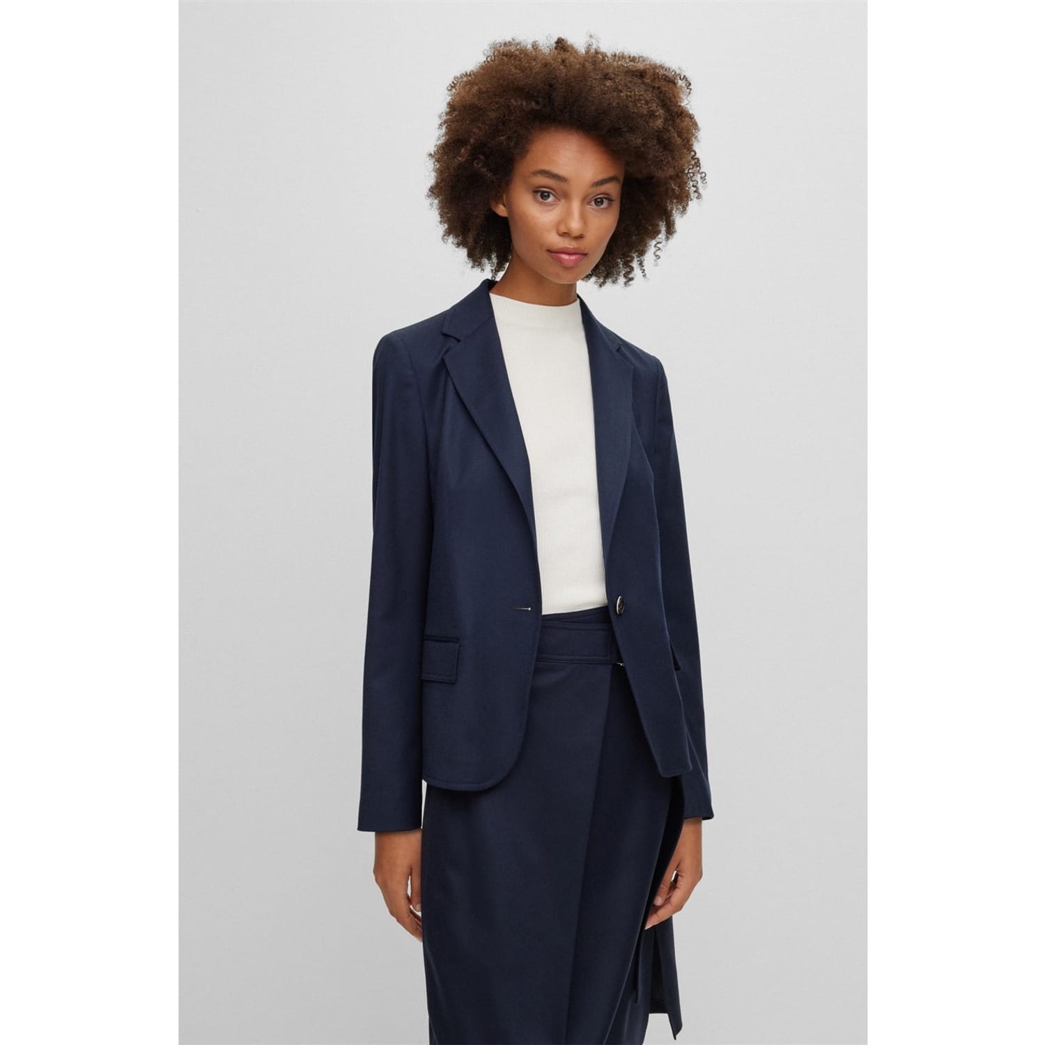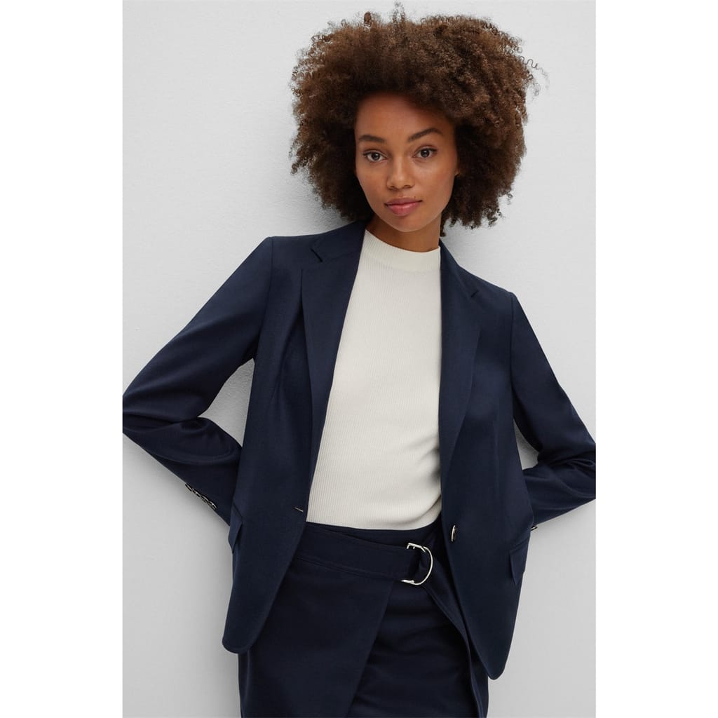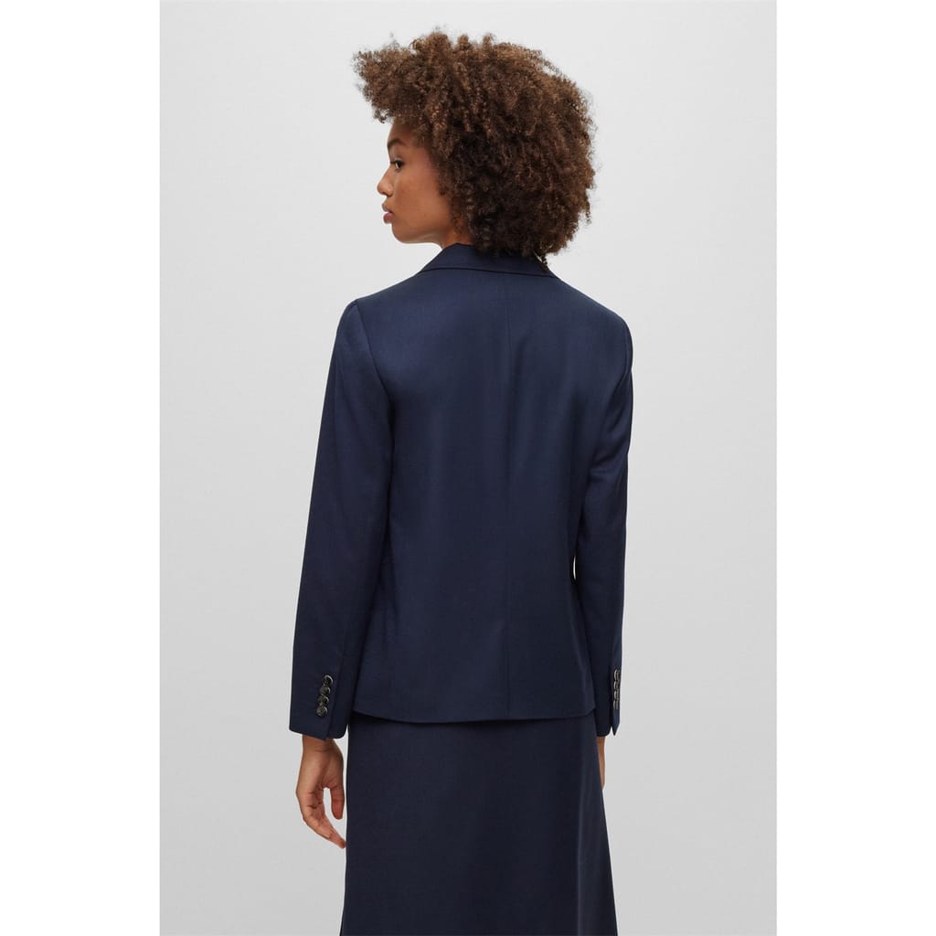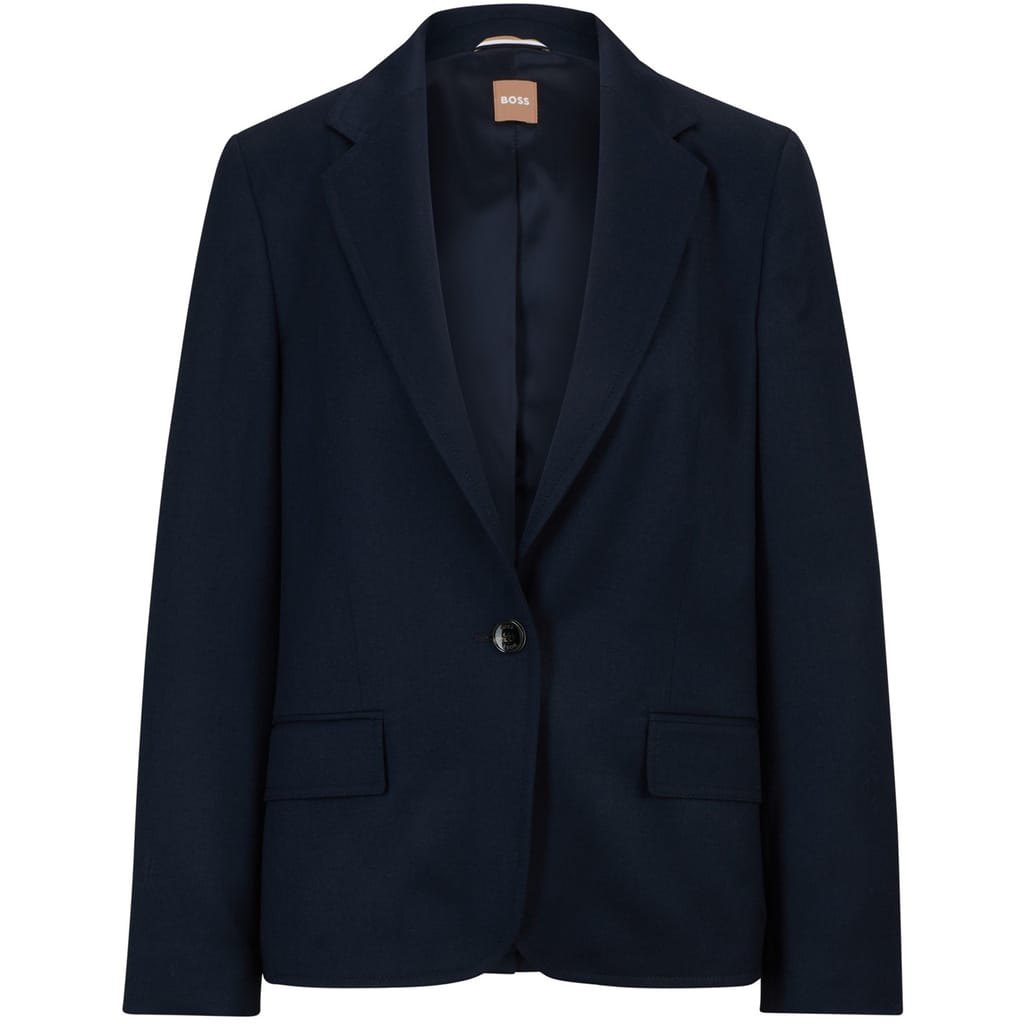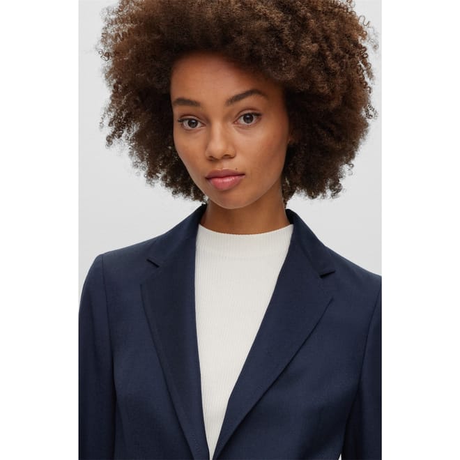 This Boss suit jacket features a notch collar and a straight hem, offering a classic and sophisticated look. Crafted in a solid pattern, it is designed with a regular fit and a short length, ensuring a timeless appeal. The button closure adds a touch of elegance, making it a versatile addition to any wardrobe. -