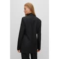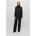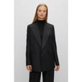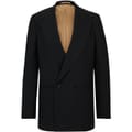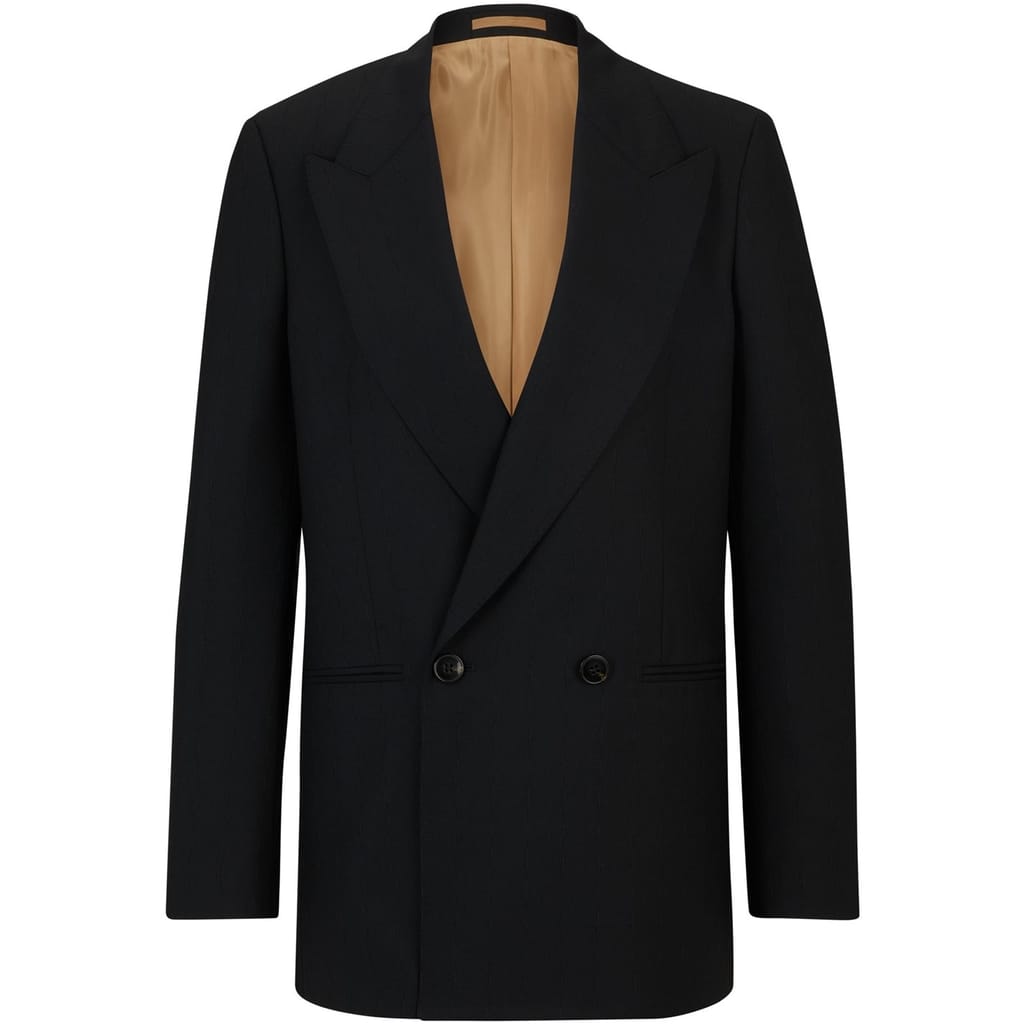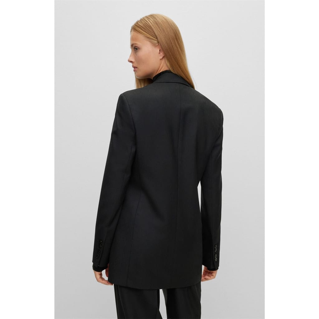 This Boss suit jacket features a lapel collar and a double-button closure, offering a relaxed fit. The solid pattern and straight hemline provide a classic look, while the addition of pockets adds functionality. -