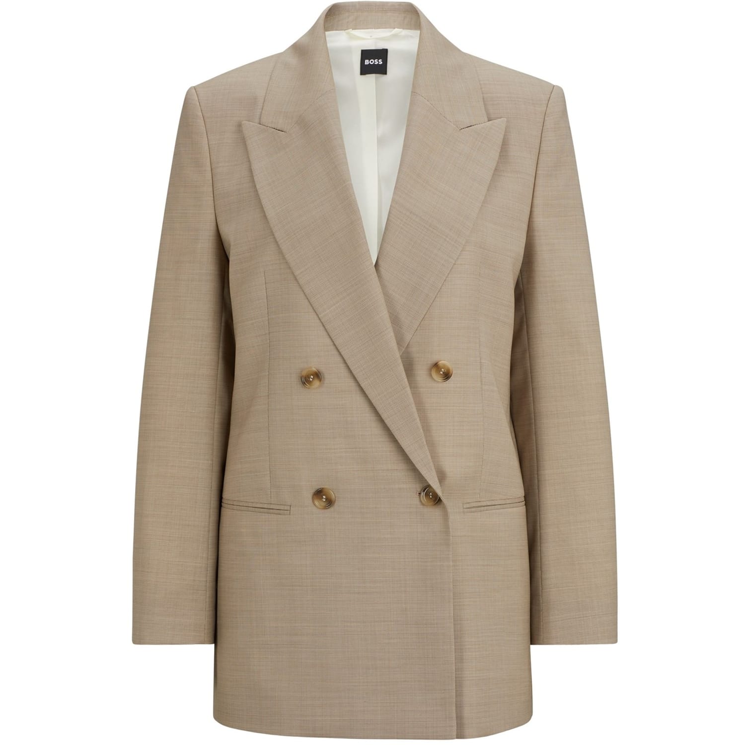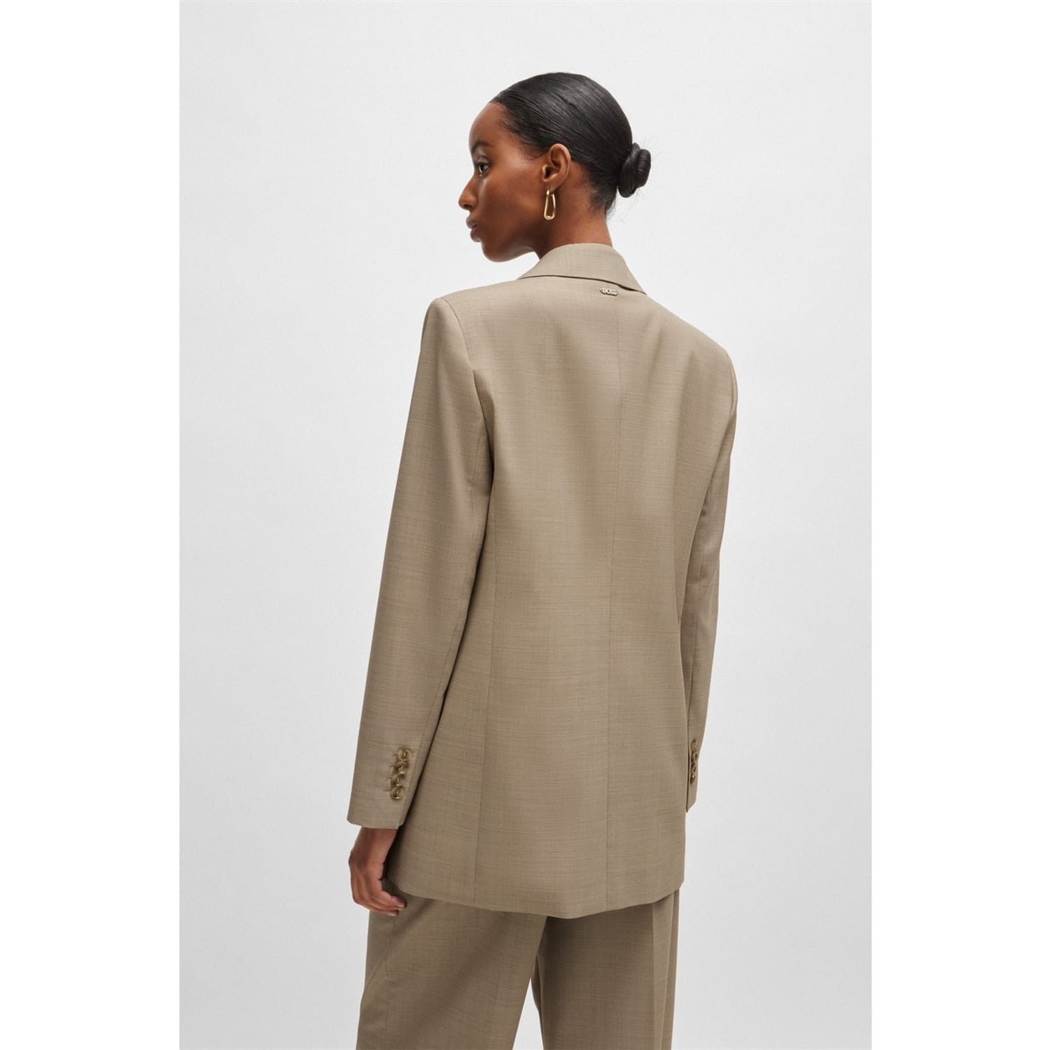This Boss suit jacket features a lapel collar and a straight hem, offering a relaxed fit. The solid pattern and double-button closure add a touch of sophistication to this classic piece. -
