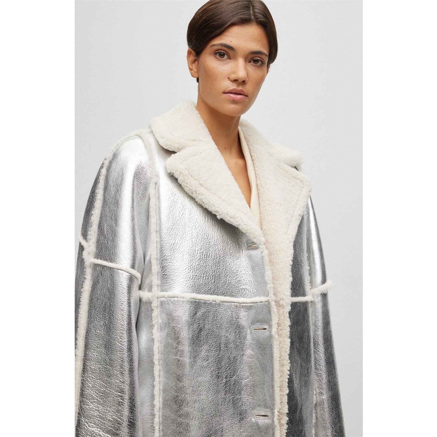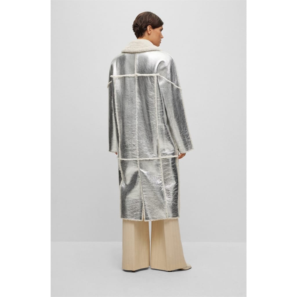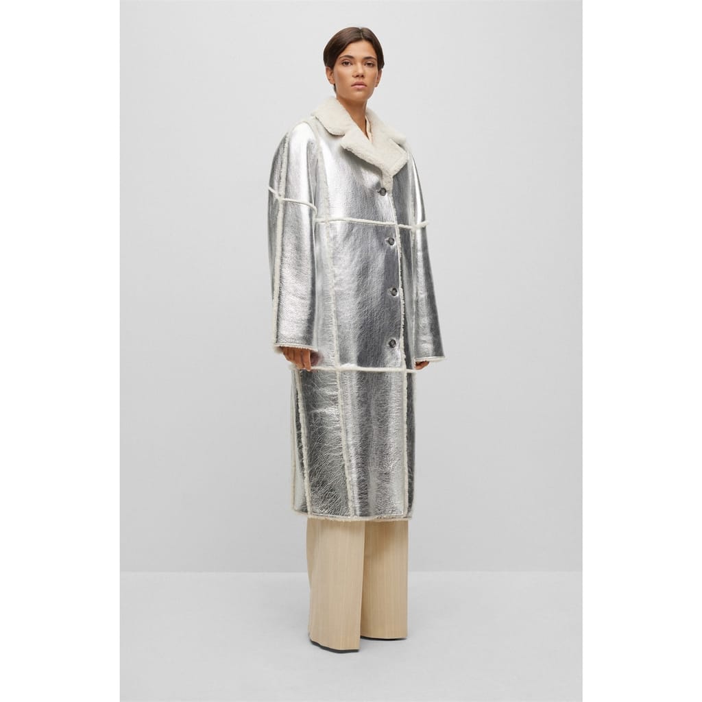 This Boss overcoat is perfect for the winter season. Featuring a shawl neck and a relaxed fit, it offers both style and comfort. The metallic pattern adds a touch of sophistication, while the button closure ensures a secure fit. With practical pockets and a straight hem, this overcoat is a versatile addition to your wardrobe. -