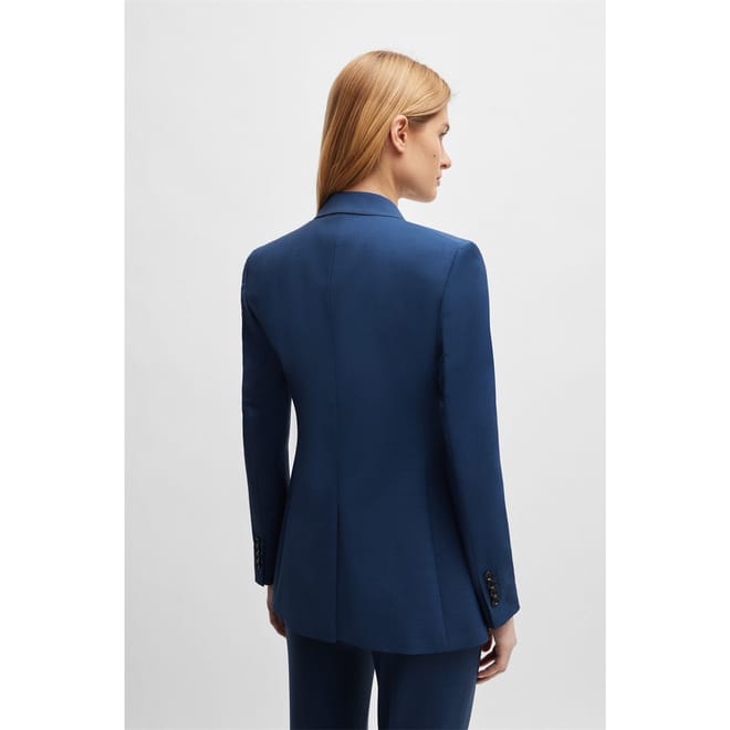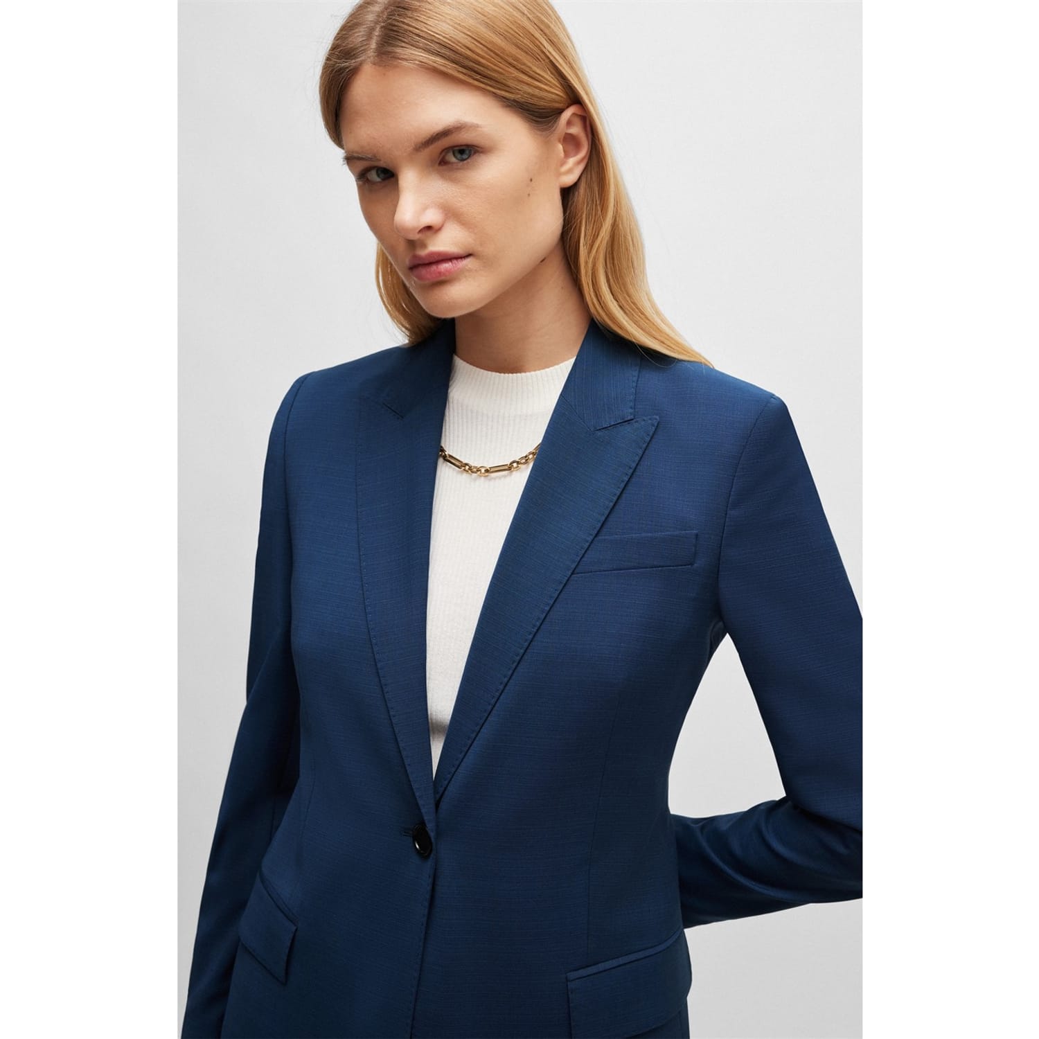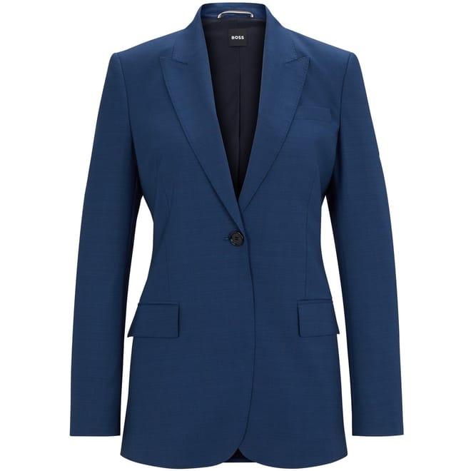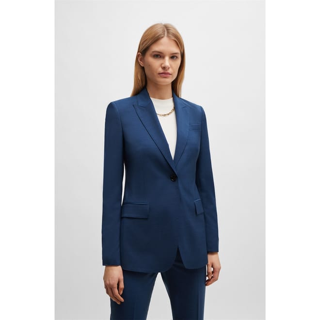 This Boss suit jacket features a notch collar and a single button closure, offering a classic and sophisticated look. The regular fit ensures comfort, while the solid pattern adds a touch of elegance. Complete with a straight hem and practical pockets, this jacket is a versatile addition to any wardrobe. -