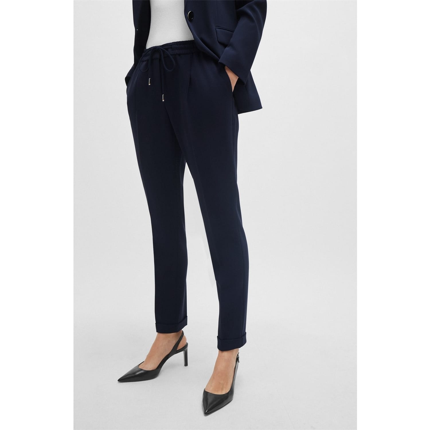 Discover the perfect blend of style and comfort with Boss trousers. These pants feature a regular fit and a convenient drawstring closure, ensuring a comfortable and adjustable wear. Designed with practical pockets, they offer both functionality and a sleek look, making them a versatile addition to any wardrobe. -