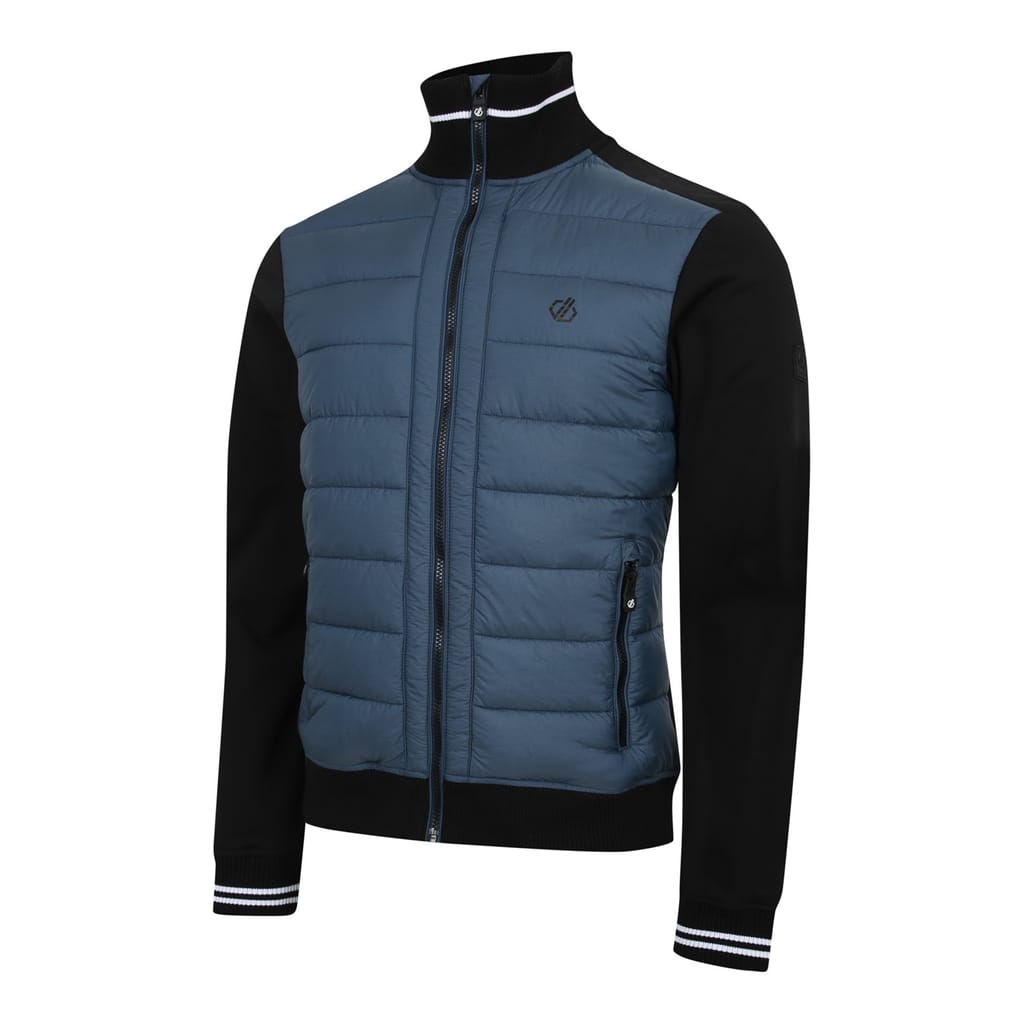 The Dare 2b ski jacket offers a regular fit with a solid pattern, featuring a zipper closure. It includes ribbed cuffs and a ribbed hem for added comfort. The jacket is embellished with a logo, adding a touch of brand identity. -