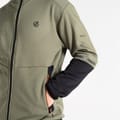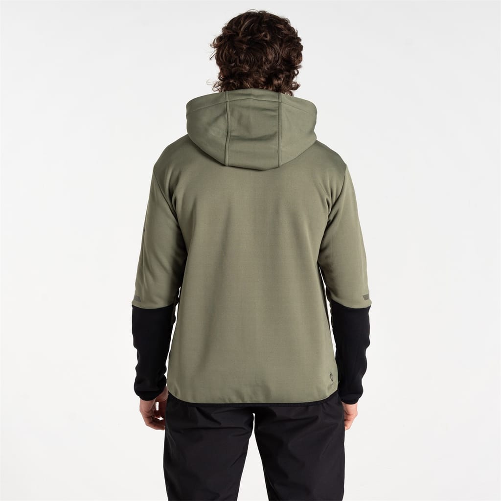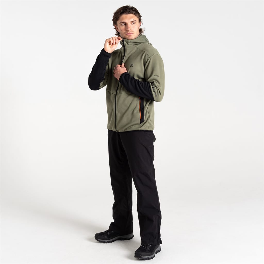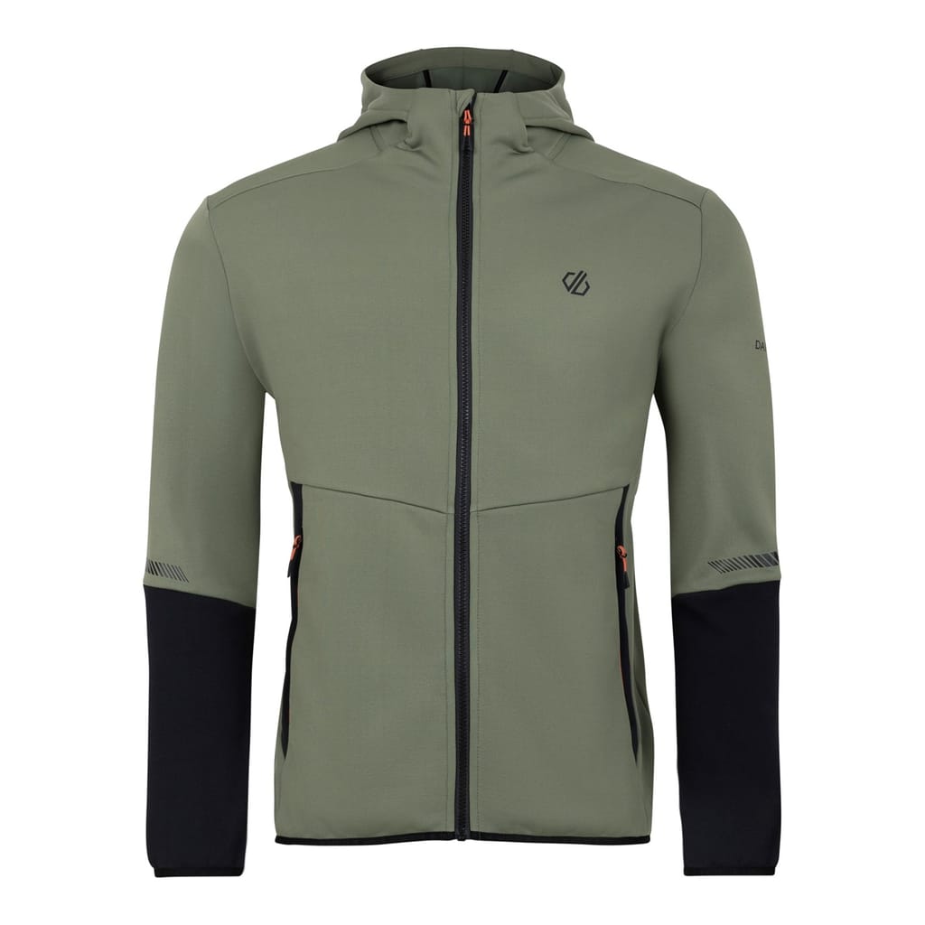 The Dare 2b hooded jacket from the activewear collection is designed for performance. Featuring a regular fit with a zipper closure, it includes raglan sleeves for enhanced movement. The solid pattern is complemented by practical embellishments such as a logo, pocket, and reflective ribbon, making it a versatile choice for active pursuits. -