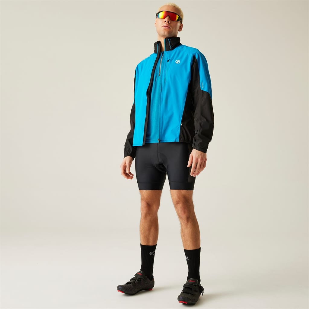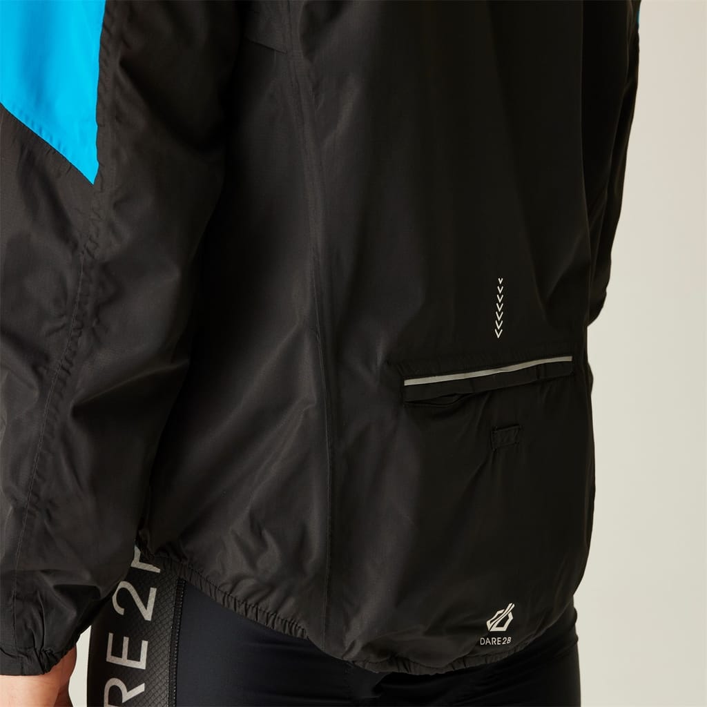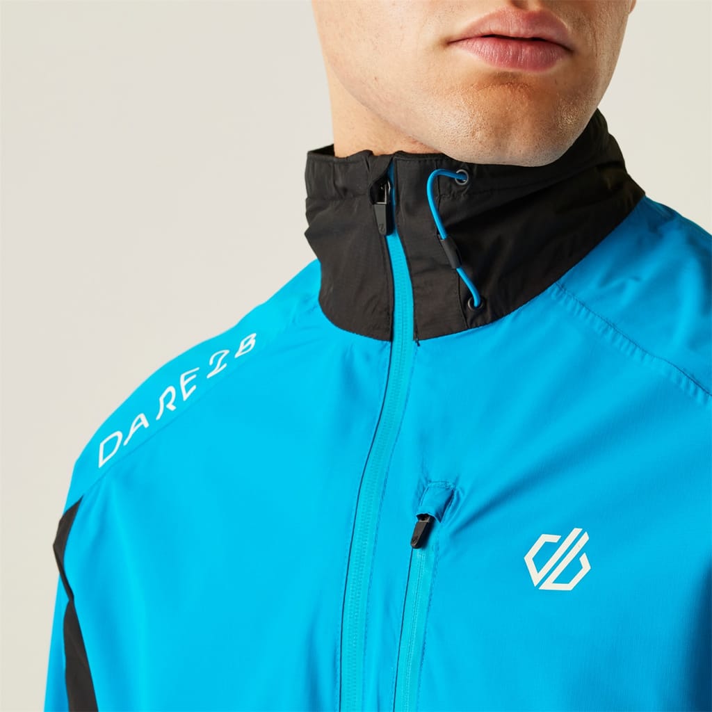 The Dare 2b performance jacket is designed for activewear enthusiasts. Featuring a high neck and a zipper closure, it offers a regular fit with a straight hem. The jacket is water repellent and includes an elasticated cuff for added comfort. Its color block pattern is complemented by a logo and reflective ribbon, ensuring visibility during sporting activities. -