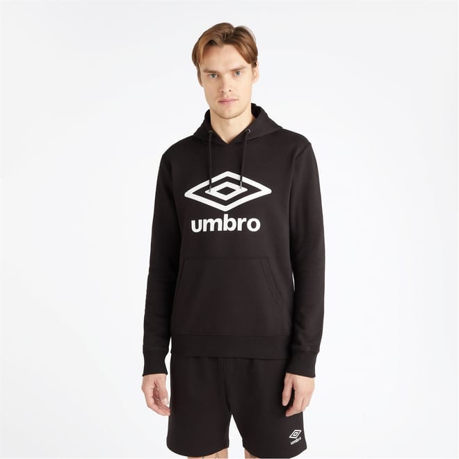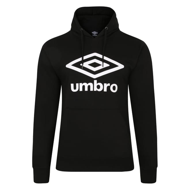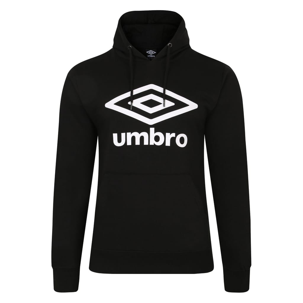This Umbro top is a casual essential featuring a hooded neck and long sleeves. Crafted with a knit fabric, it offers a regular fit for comfort. The top is adorned with a prominent logo print and a large genie graphic, adding a distinctive touch to your wardrobe. -