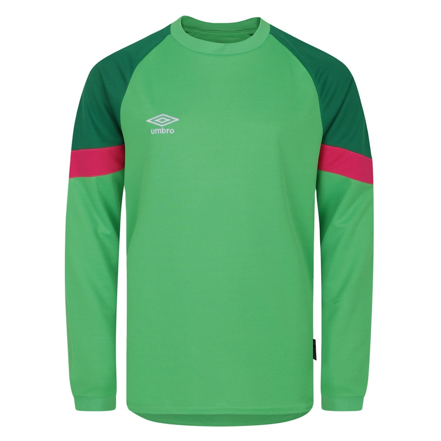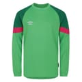 This Umbro top features a regular fit with long raglan sleeves and a crew neck. The design showcases a striking colour block pattern, complemented by the iconic logo embellishment. Ideal for those seeking a blend of style and comfort. -
