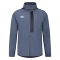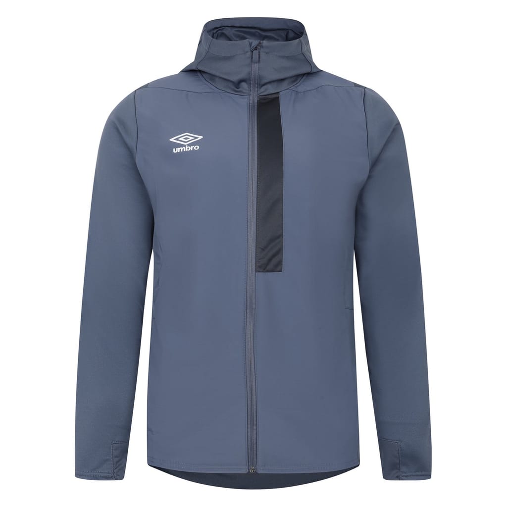 This Umbro windbreaker jacket features a hooded neckline and a zipper closure, offering practicality and style. The regular fit ensures comfort, while the elasticated cuffs and straight hem provide a neat finish. The solid pattern is complemented by a logo embellishment, adding a touch of brand identity to this versatile piece. -