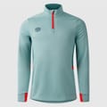 This Umbro top is a solid-coloured activewear essential, featuring a zip neck and half zipper closure. Designed with long raglan sleeves and ribbed cuffs, it offers a regular fit for comfort. The base layer style is complemented by a subtle logo embellishment, making it a versatile addition to your wardrobe. -
