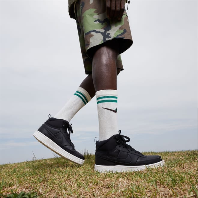 - With iconic Nike Swooshes on the sides and Nike logos on the heels, this pair symbolise style and quality. Finished with discreet tone-on-tone topstitching, these Nike Court Vision Mid Next Nature Shoes embody athletic prowess and fashion-forward design. So why wait? Gear up and take your day to the next level with these powerhouse sneakers! -