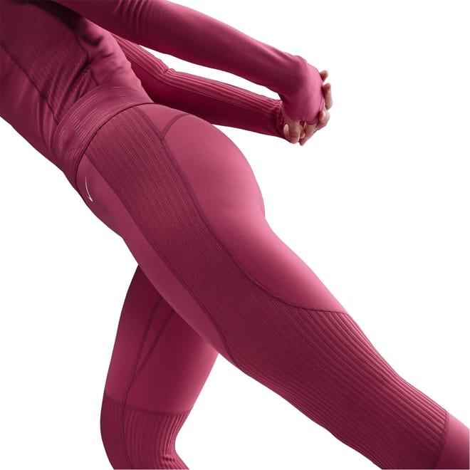 Nike leggings designed for running enthusiasts. These ribbed performance leggings feature a subtle logo embellishment, offering both style and functionality. Ideal for those seeking comfort and support during their athletic pursuits. -