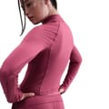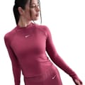 Nike performance top featuring a mock neck and long raglan sleeves. Designed with a compression fit, it offers a solid pattern and includes thumbhole cuffs for added functionality. -