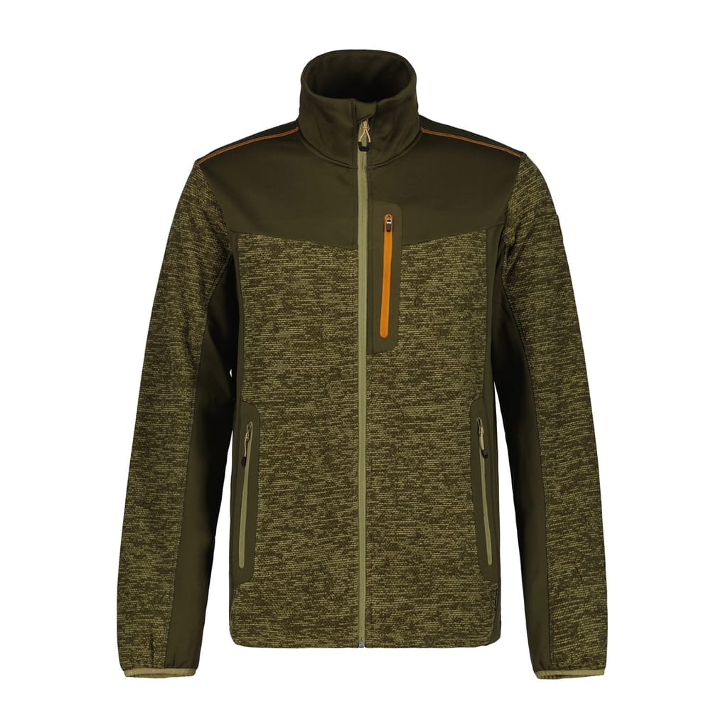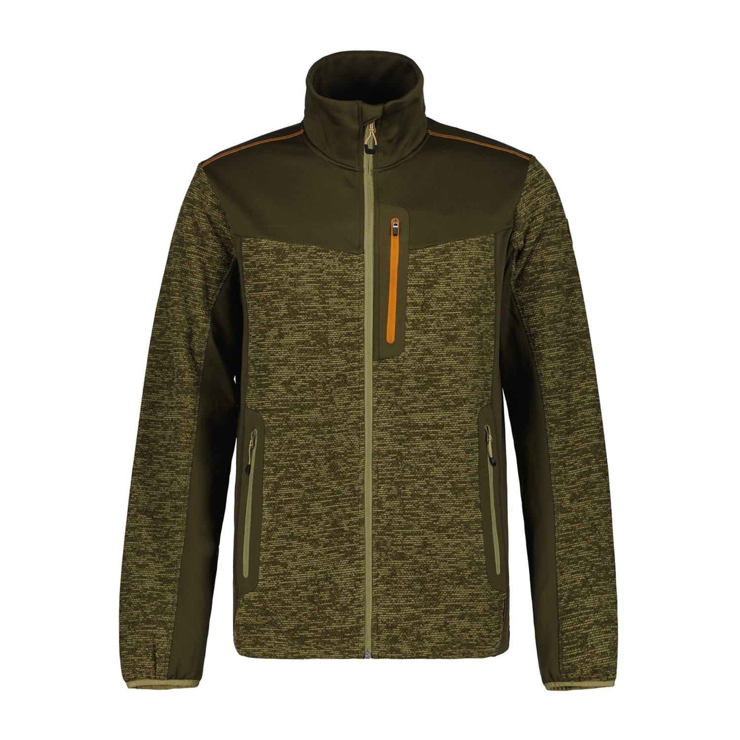 This Icepeak top features a marled pattern and a funnel neck, offering a stylish yet functional design. The long sleeves and ribbed cuffs ensure comfort, while the regular fit provides a classic silhouette. A full zipper closure adds practicality, complemented by a logo and zipped pocket for added detail. -
