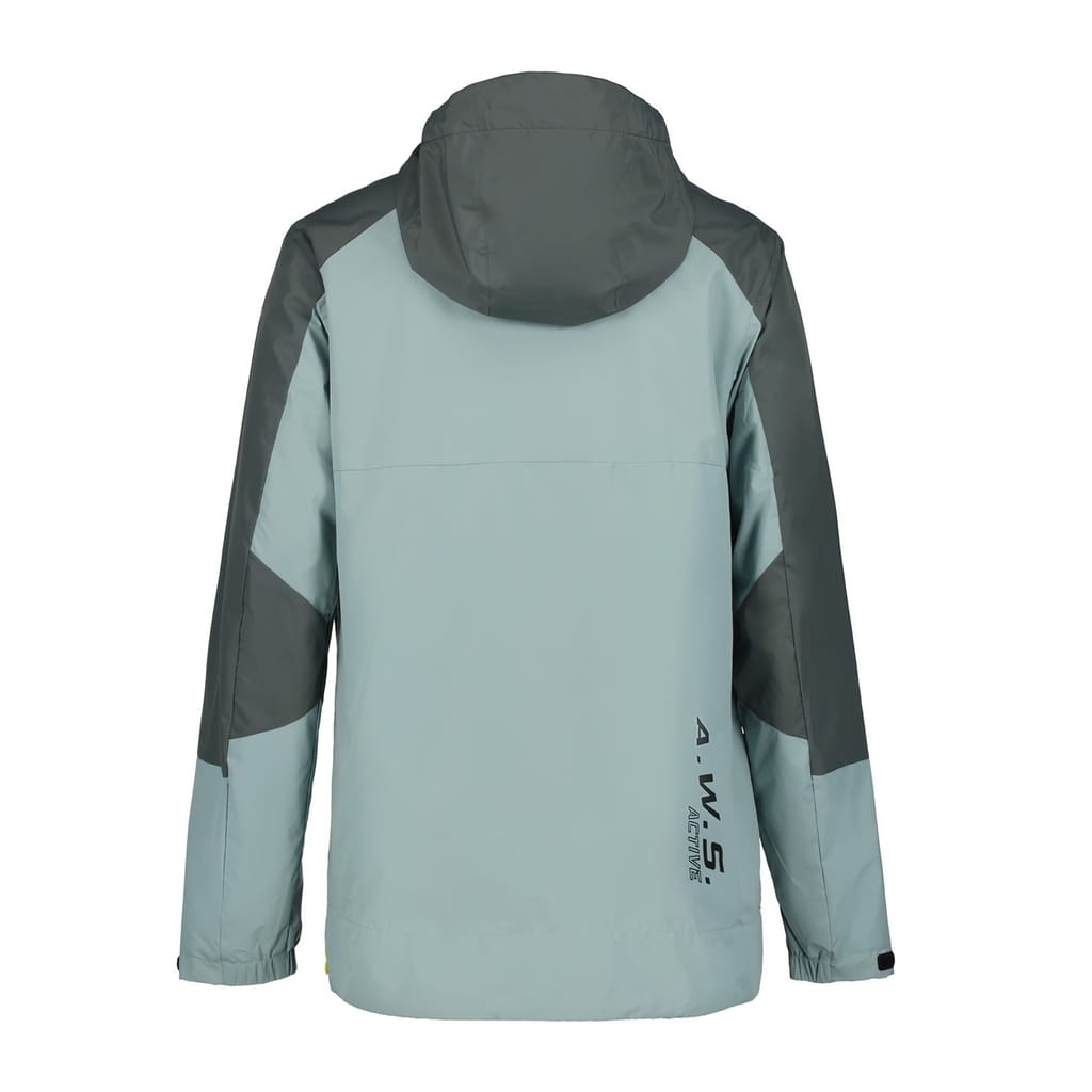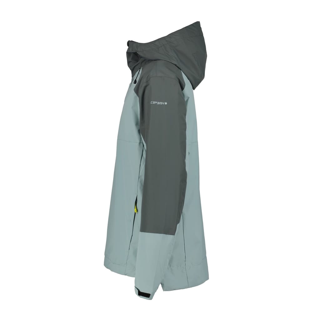The Icepeak jacket features a hooded design with a water-repellent finish, perfect for rainy days. It has a regular fit and a straight hem, providing comfort and style. The jacket includes a zipper closure and elasticated cuffs for a secure fit. The color block pattern adds a modern touch, while the logo embellishment offers a subtle brand detail. -