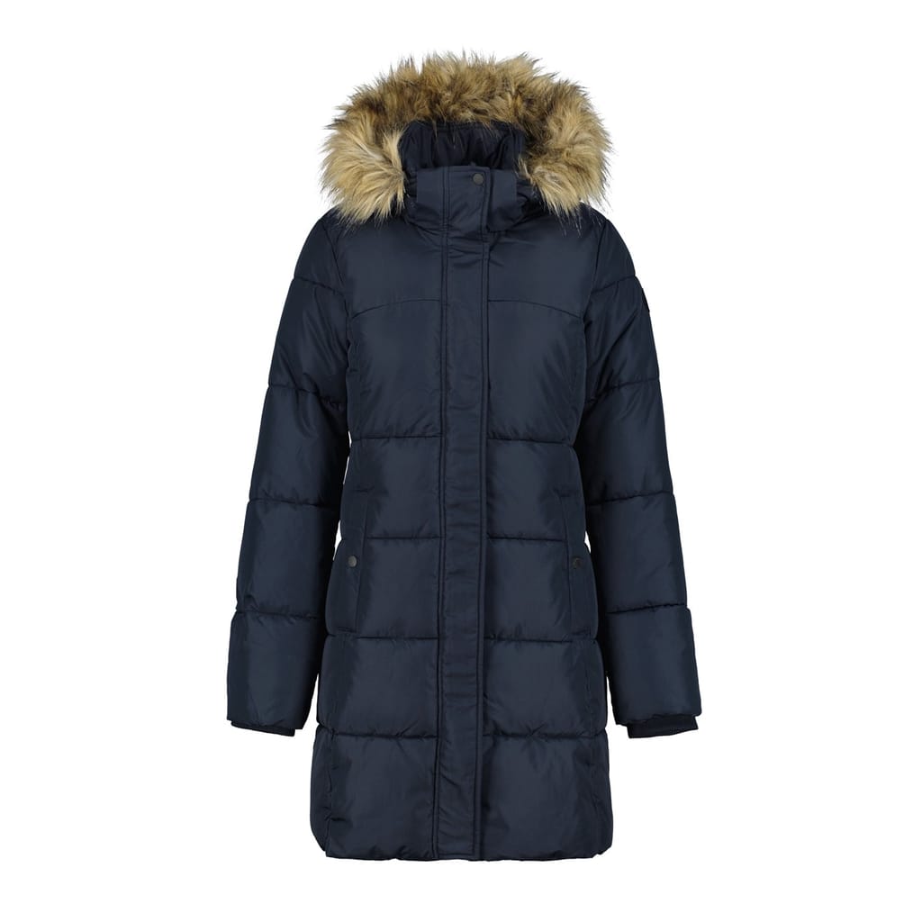 The Icepeak parka is designed for functionality and style. Featuring a hooded neckline and a zipper closure, this insulated jacket ensures warmth and comfort. The regular fit and ribbed cuffs provide a snug feel, while the straight hem adds a clean finish. Embellished with a logo and pockets, this solid pattern parka is a practical choice for cooler weather. -
