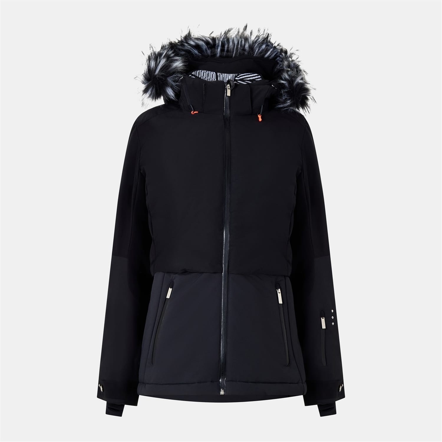 The Icepeak ski jacket is designed for functionality and comfort. Featuring a hooded neckline and a relaxed fit, it ensures ease of movement. The jacket includes a zipper closure and zipped cuffs for added convenience. Solid in pattern, it comes with practical pockets, including zipped pockets, and a straight hem for a clean finish. -