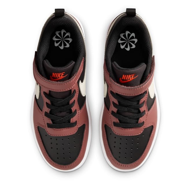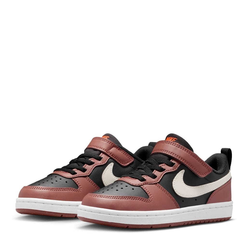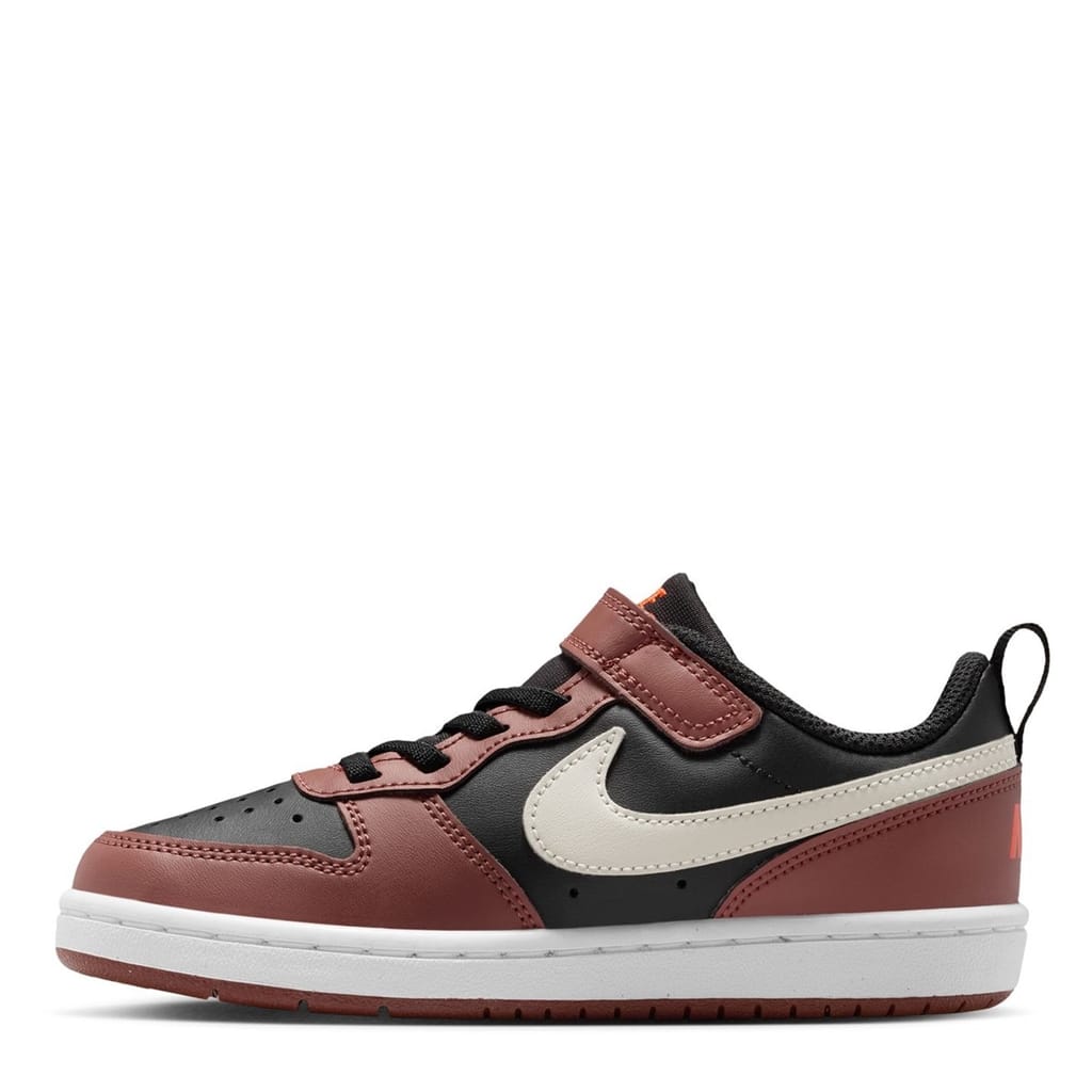 These Nike Court Borough Trainers are designed with elasticated laces and hook and loop tape fastening. They feature a padded ankle collar and tongue for comfort and support. These trainers have a loop tab to the heel and a chunky midsole. They also have a grip sole and are complete with Nike Swoosh branding.