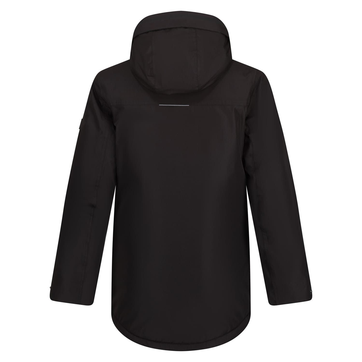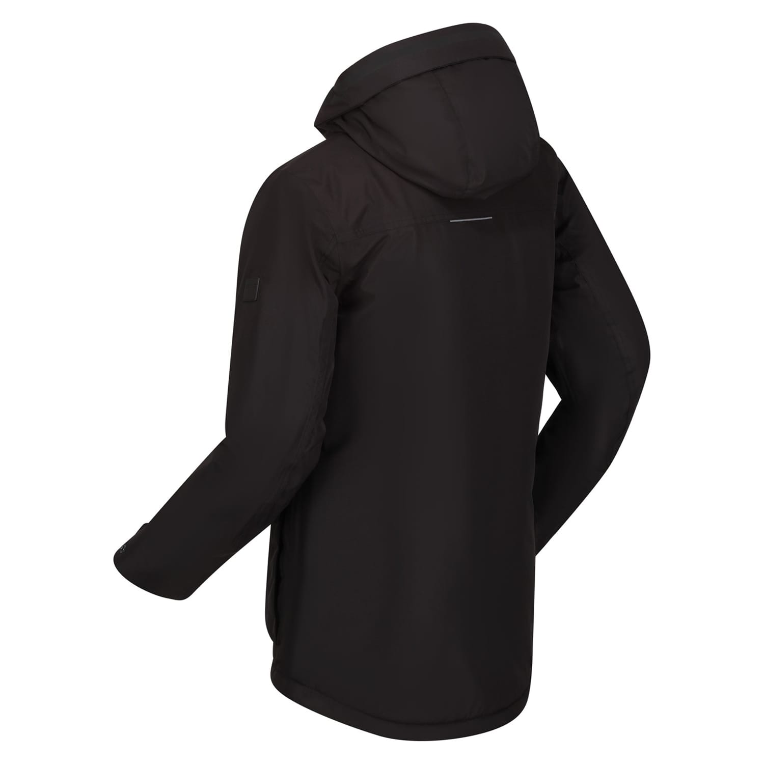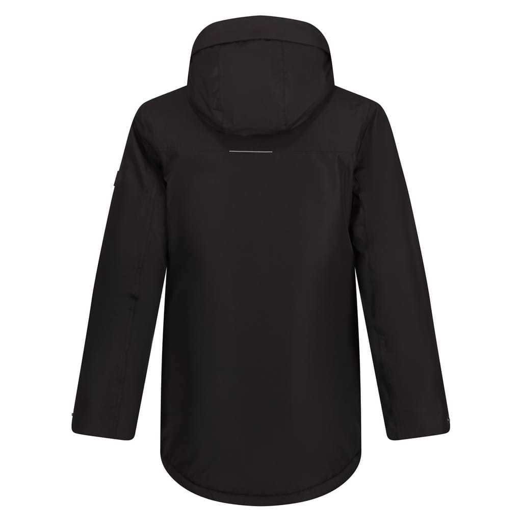 The Regatta softshell jacket features a curved hem and a regular fit, offering a comfortable and stylish look. It comes with a zipper closure and snap buttons for added security. The solid pattern is complemented by logo embellishments and practical pockets, making it a versatile choice for various occasions. -