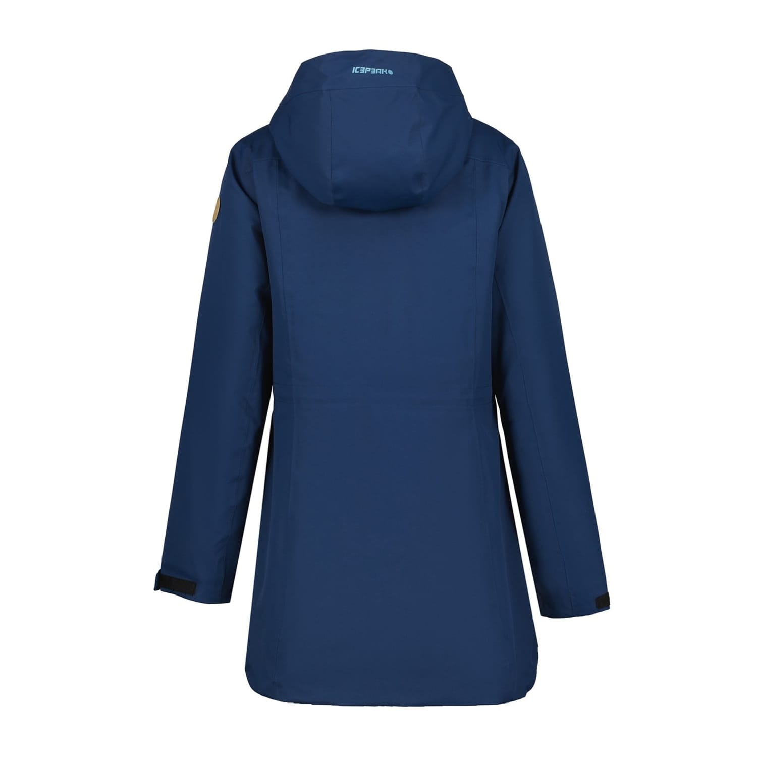 The Icepeak insulated parka jacket is designed for optimal warmth and comfort. Featuring a hooded neckline and a regular fit, this solid jacket includes a zipper closure and elasticated cuffs for a secure fit. The straight hem adds a classic touch, while practical elements like pockets, a logo, and zipped pockets enhance functionality. -