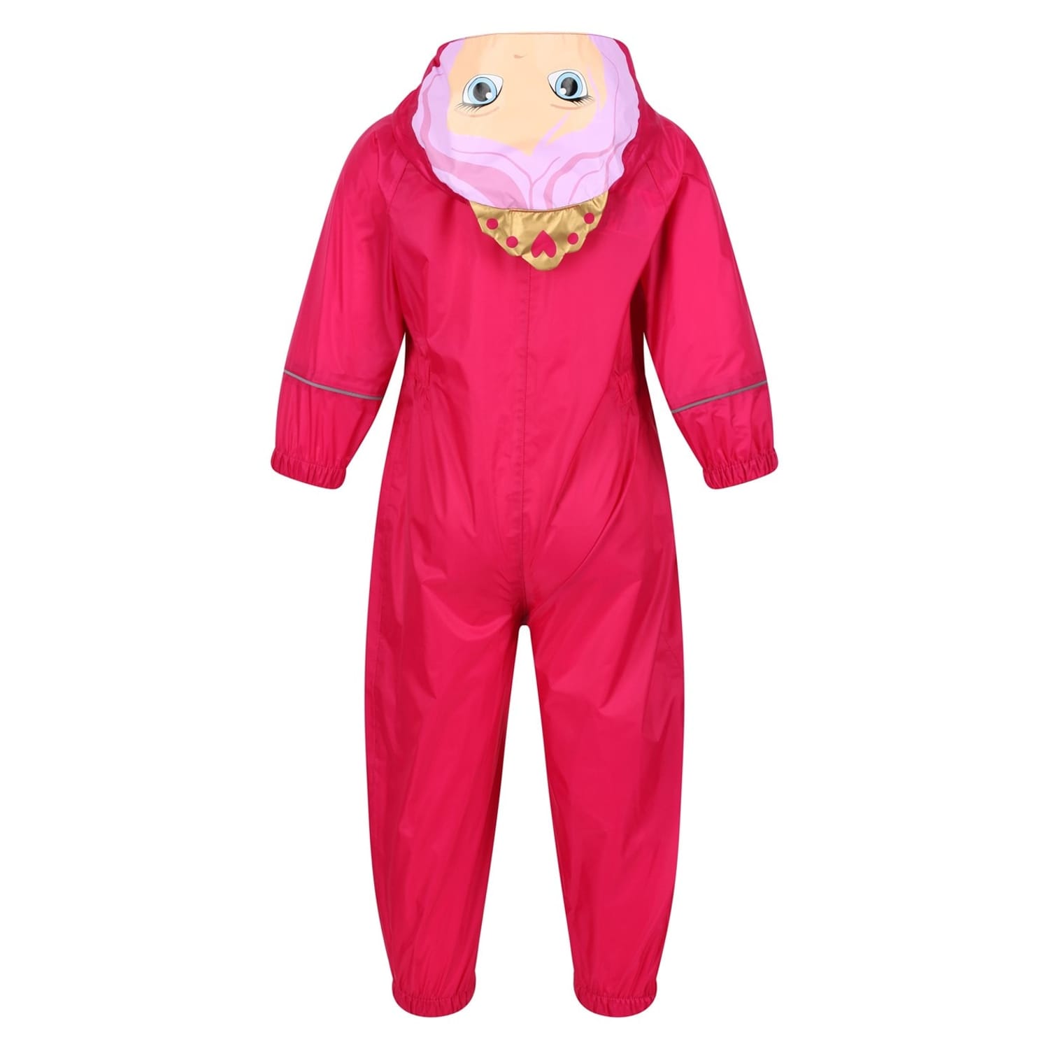 Stay dry and stylish with the Regatta hooded jacket, perfect for casual outings. This water-repellent piece features a regular fit with a zipper closure, ensuring comfort and practicality. The elasticated cuffs and hem provide a snug fit, while the solid pattern and super girl graphic add a touch of flair. Complete with pockets for added convenience. -