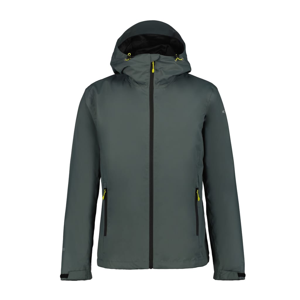 The Icepeak hooded jacket is designed for practicality and style. Featuring a water-repellent finish, it ensures protection against the elements. The jacket has a regular fit with a straight hem and a solid pattern. It includes a zipper closure and practical pockets, including zipped pockets, for secure storage. -