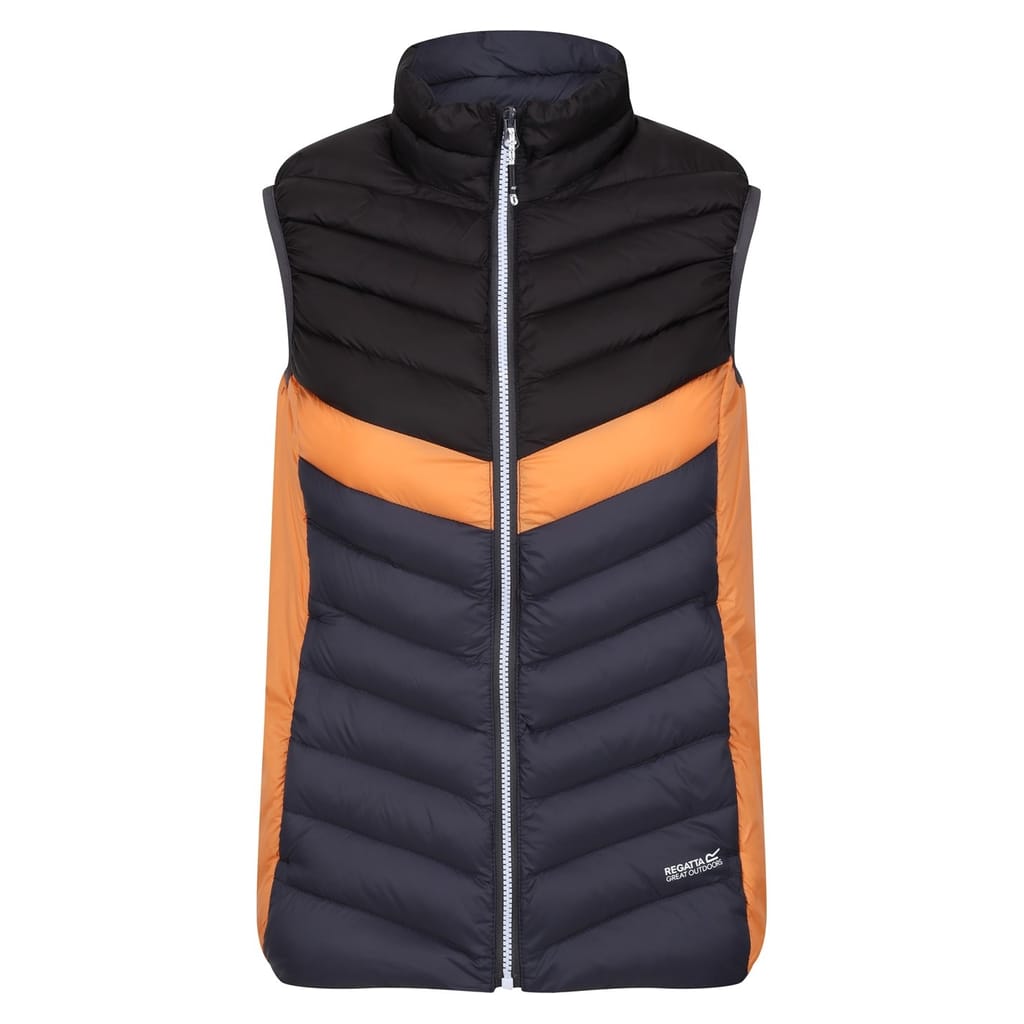 This Regatta gilet features a mock neck and a convenient zipper closure. Designed in a regular fit, it showcases a stylish color block pattern. The gilet is adorned with a logo embellishment, adding a touch of brand identity. -