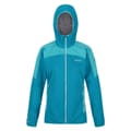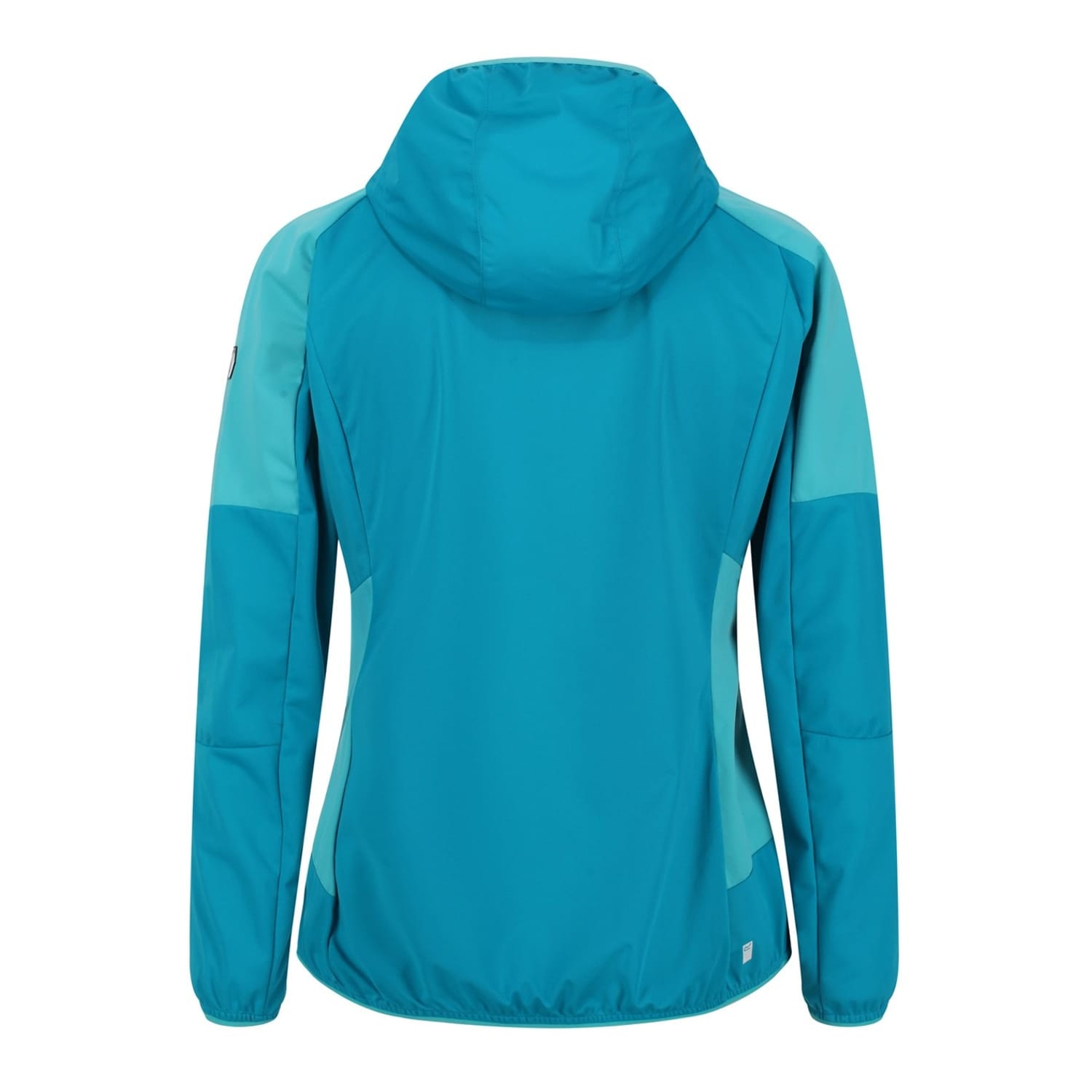 The Regatta softshell jacket from the activewear collection features a hooded design with a zipper closure. It showcases a color block pattern and includes a logo embellishment. The jacket is designed with raglan sleeves and elasticated cuffs, offering a regular fit. The straight hem adds to its sleek look, making it a practical choice for outdoor activities. -