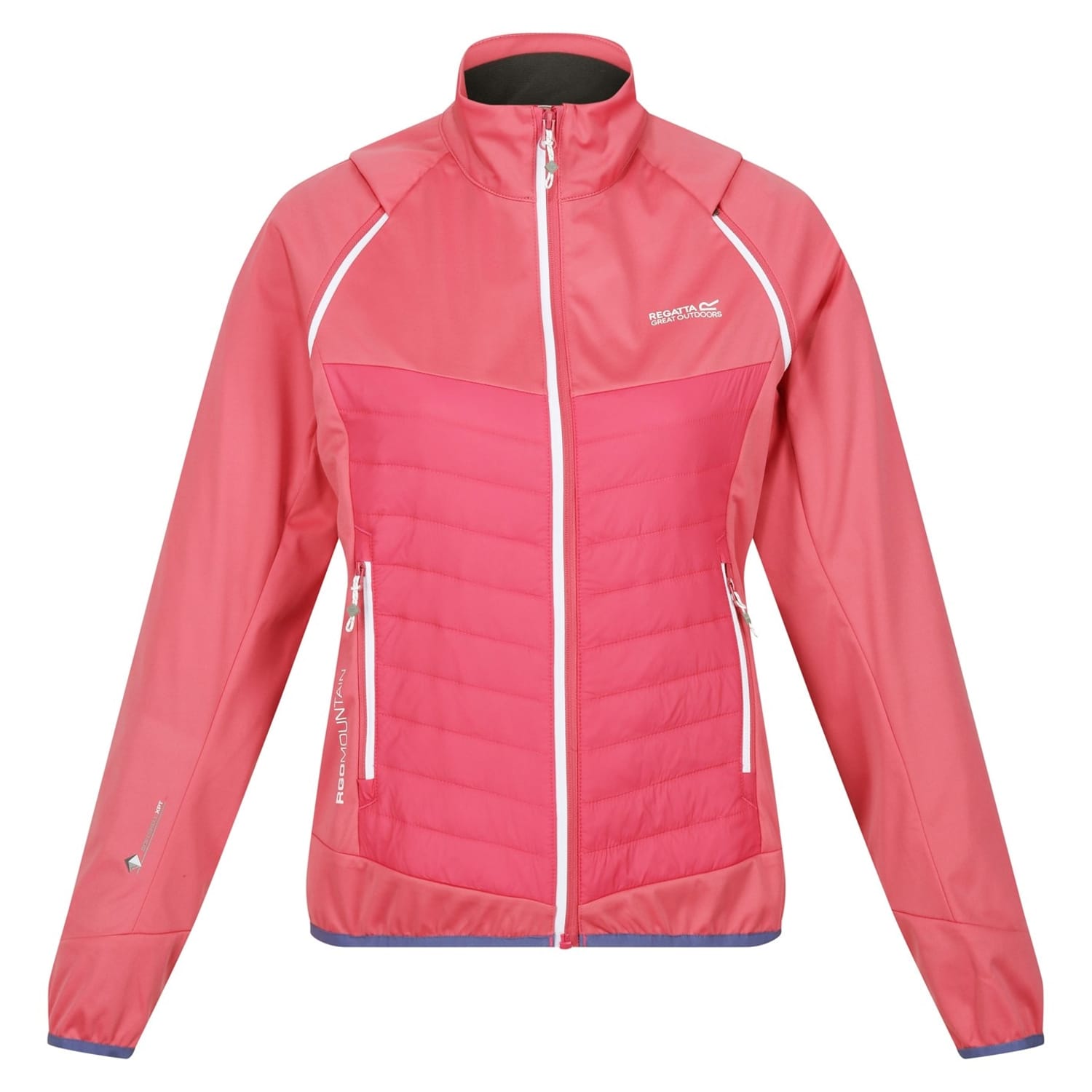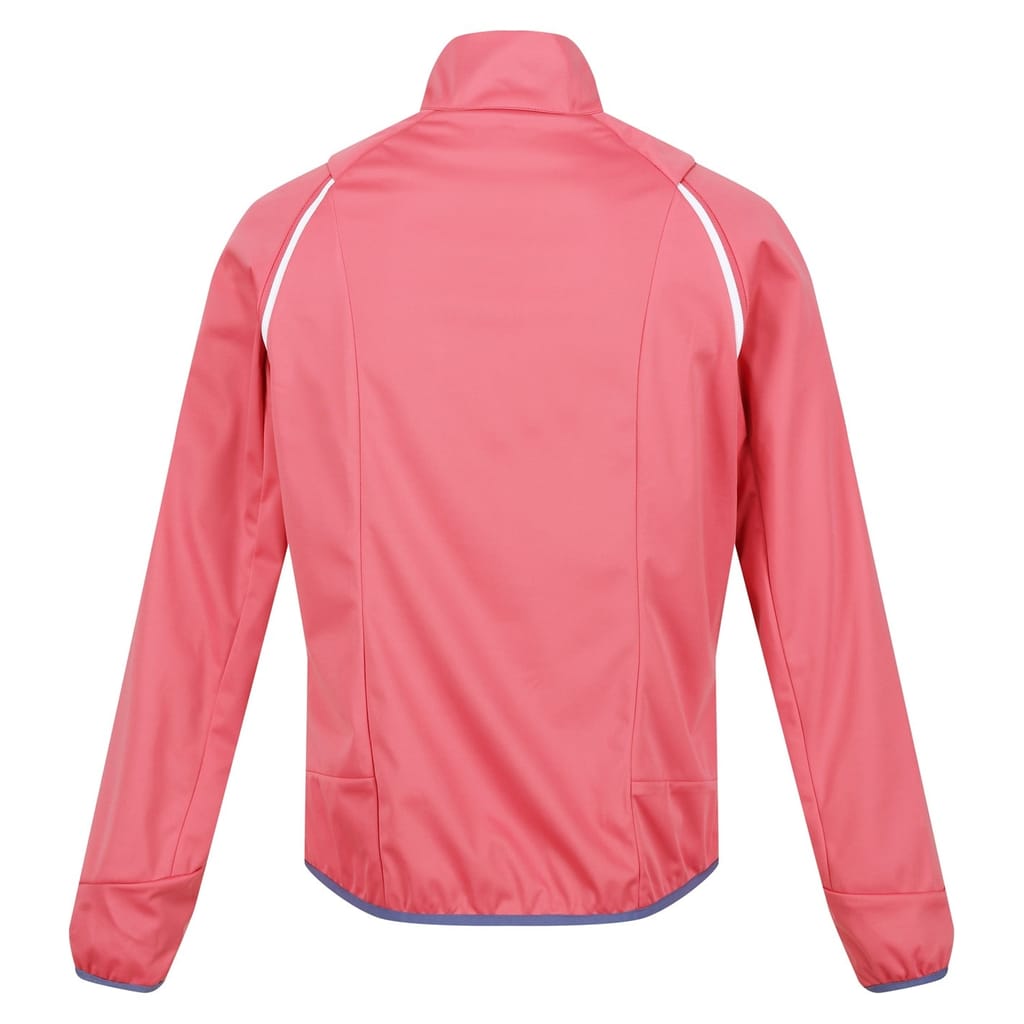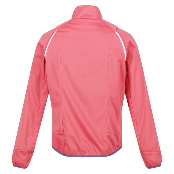 This Regatta softshell jacket features a zip neck and raglan sleeves for enhanced mobility. The jacket is designed with a regular fit and a straight hem, providing a comfortable and versatile look. It includes a zipper closure and elasticated cuffs for a secure fit. The solid pattern is complemented by a subtle logo embellishment, adding a touch of brand identity. -
