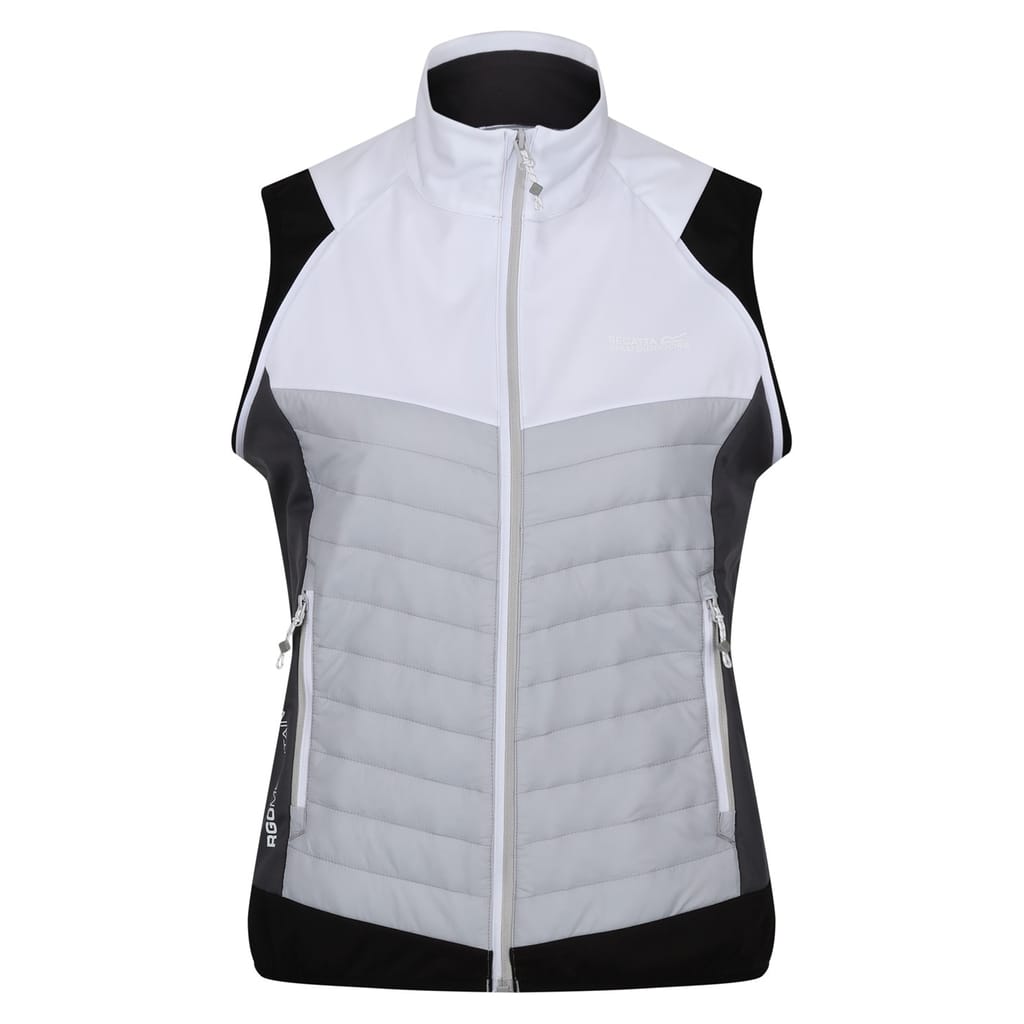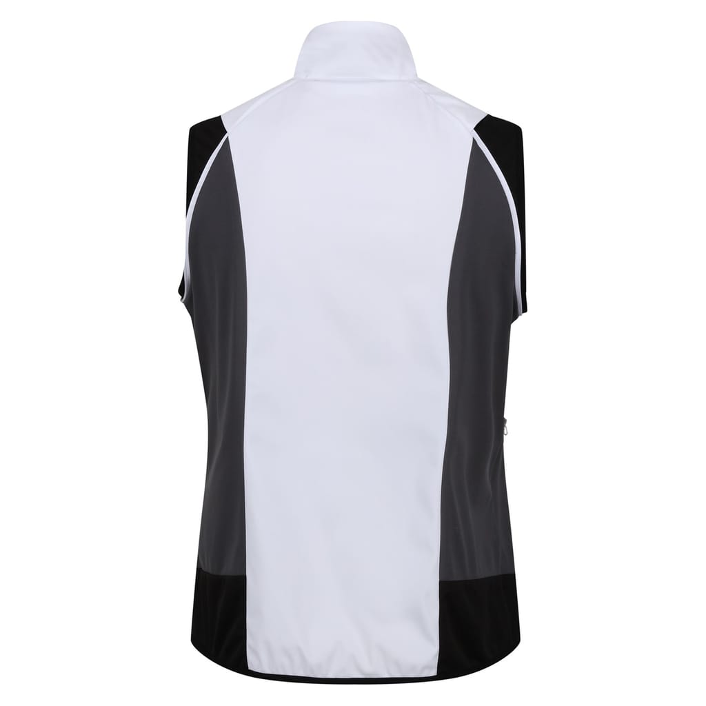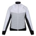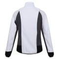 The Regatta softshell jacket features a zip neck and raglan sleeves for a comfortable fit. It includes a zipper closure and elasticated cuffs, complemented by a straight hem. The jacket showcases a color block pattern and is adorned with a logo. Practicality is enhanced with pockets, including zipped options, making it a versatile choice for various activities. -