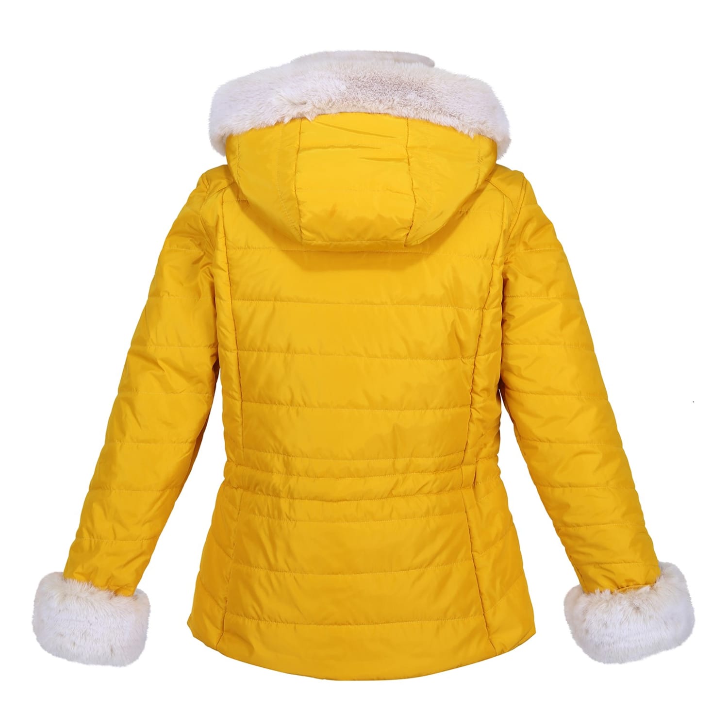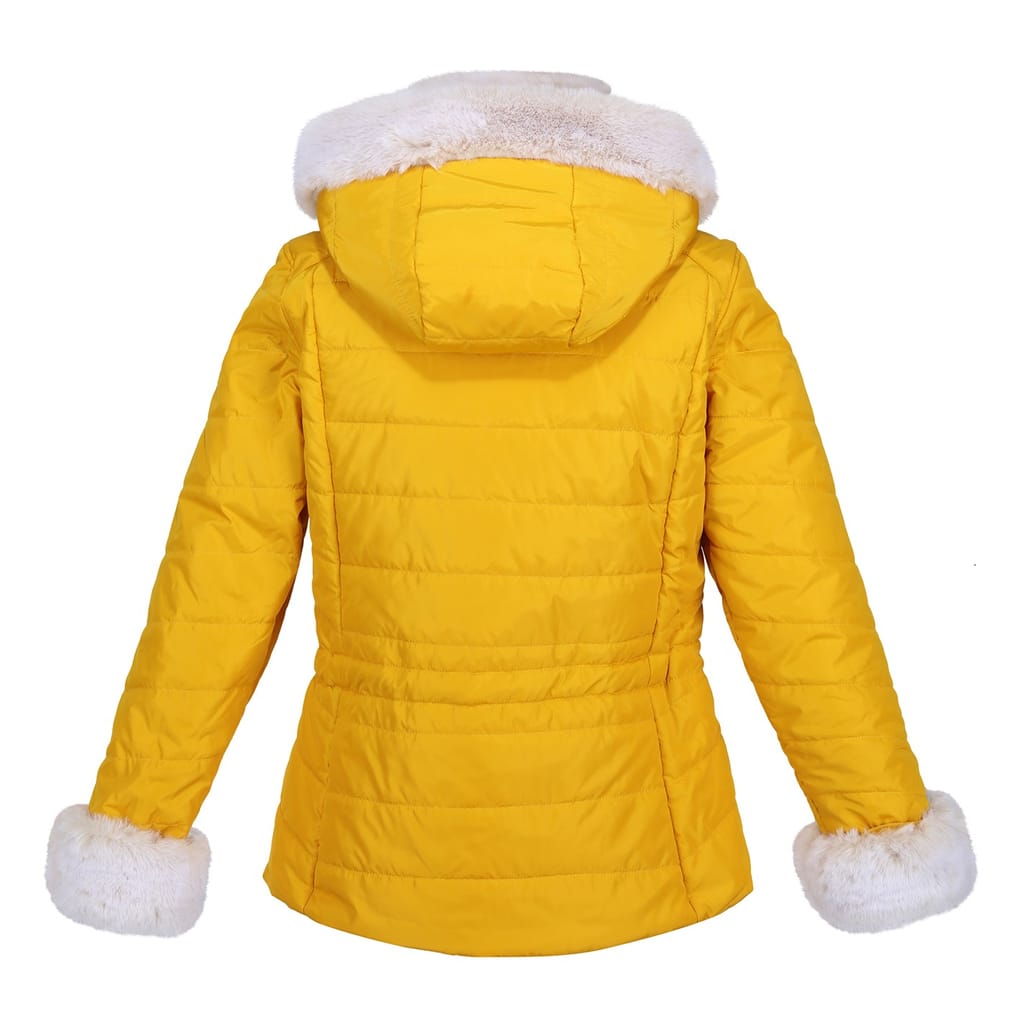 The Regatta Willabella puffer jacket is designed for those seeking warmth and style. This heavyweight piece features a hooded neckline and a zipper closure, ensuring protection against the elements. The jacket's regular fit and straight hem provide a comfortable silhouette, while the fur trim adds a touch of elegance. Ribbed cuffs complete the design, making it a practical choice for colder days. -