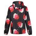 The Regatta softshell jacket features a hooded neckline and a relaxed fit, perfect for casual outings. It includes a zipper closure and elasticated cuffs for added comfort. The jacket is adorned with a graphic print and a logo, adding a touch of style to its functional design. -