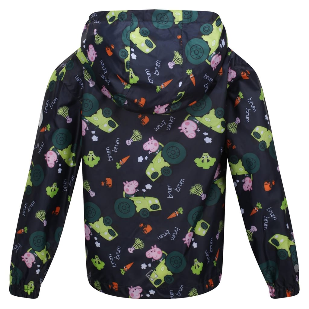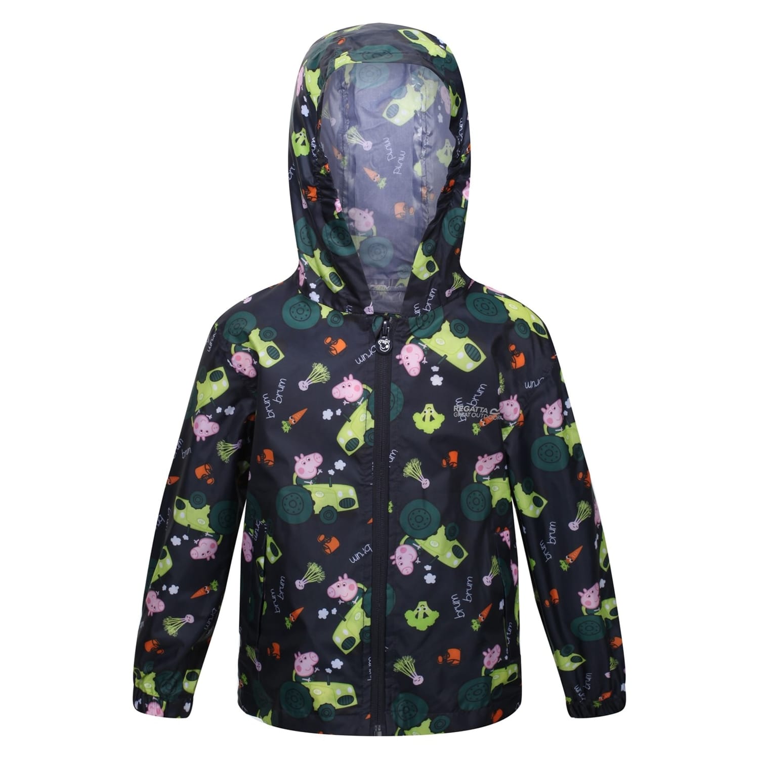 Stay dry with the Regatta rain jacket, featuring a hooded design and a water-repellent finish. This regular fit jacket includes a zipper closure and elasticated cuffs for added comfort. The graphic print adds a stylish touch, while practical pockets provide functionality. -