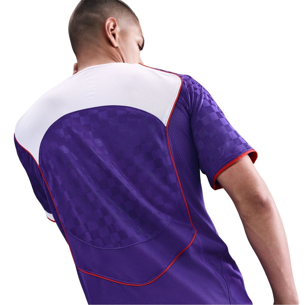 This Nike top is designed for performance with a regular fit and short sleeves. Featuring a stylish V-neck and a distinctive checkerboard pattern, it combines functionality with a modern aesthetic. -