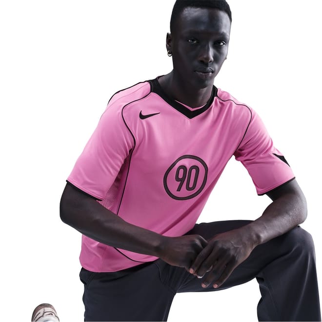 This Nike top is designed for performance with a regular fit and short raglan sleeves. It features a V-neck and a striking graphic print, adding a dynamic touch to your activewear collection. The curved hem enhances its modern appeal, making it a versatile choice for various activities. -
