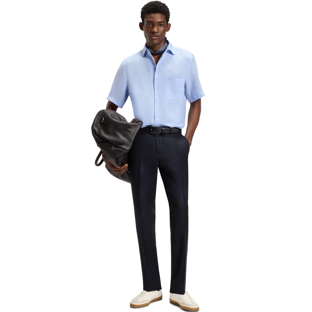 Stay cool without compromising on style with the Boss x Beckham Shirt. Crafted from linen for a lightweight, breezy feel, the shirt's solid colourway offers easy styling options with your ensemble. With front button fastening for versatile wearing, this shirt is perfect for sun-soaked holidays, sweltering summer evenings or drinks into the night.