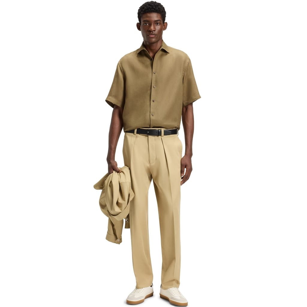 Elevate your summer ensemble with the Boss x Beckham Relaxed Shirt. Crafted from luxurious linen that ensures a lightweight and breezy feel, the short sleeves provide all-day comfort in the heat. With front button fastening offering versatile wearing options, this shirt is the perfect accompaniment for sun-soaked holidays, al fresco dining or summer evening drinks.