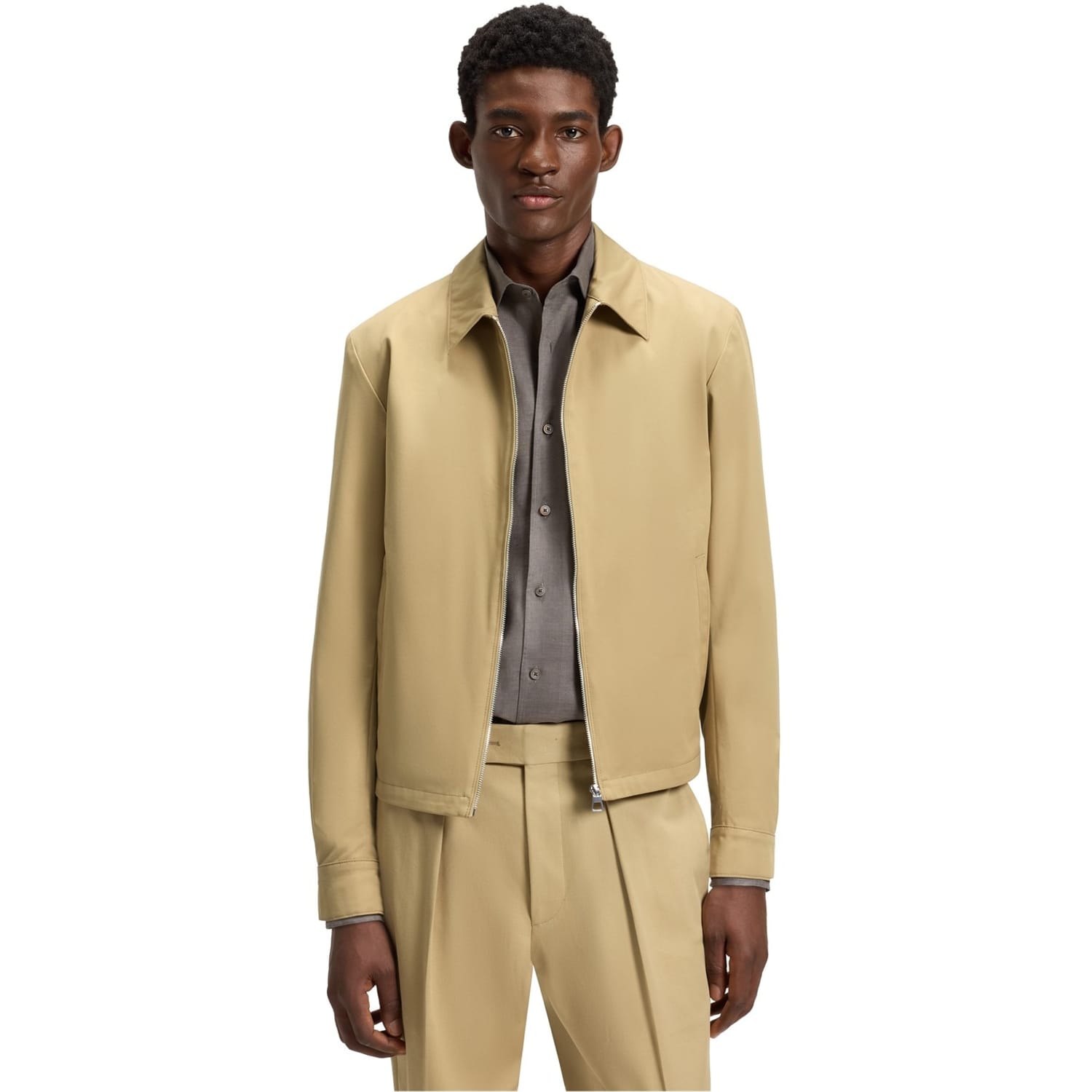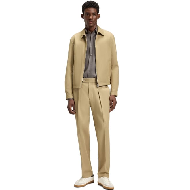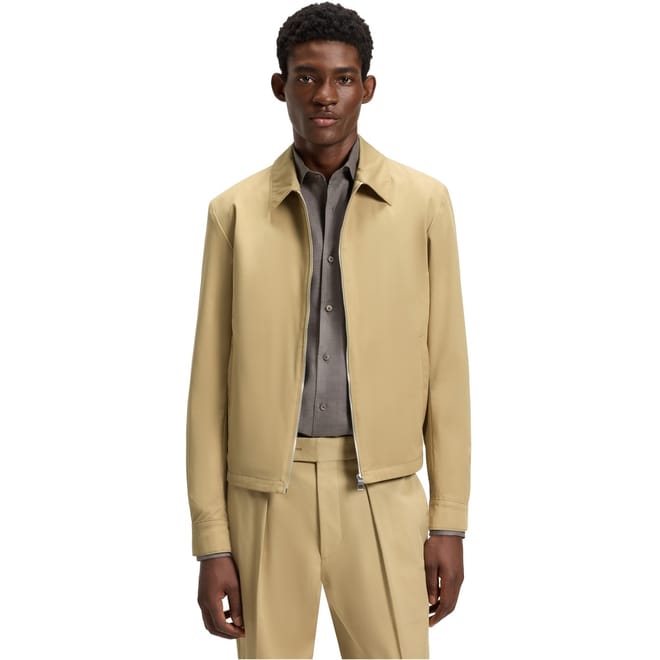 The BECKHAM x BOSS Cotton Blend Zippered Jacket combines the heritage of BOSS with David Beckham's refined style, crafted from a soft cotton blend for a clean, minimalist look. Featuring a sleek zip closure, it offers both comfort and sophistication. A timeless wardrobe essential, this jacket is perfect for casual outings or relaxed evening events, bridging the gap between seasons effortlessly.