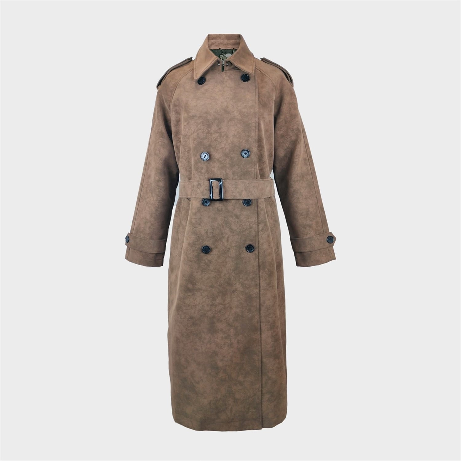 This Biba trench coat is a stylish addition to your wardrobe. Featuring a relaxed fit, it offers a comfortable wear with a straight hem and cuff sleeves. The solid pattern adds a classic touch, while the button and belt closure provide a secure fit. Practical pockets enhance its functionality, making it a versatile choice for various occasions. -